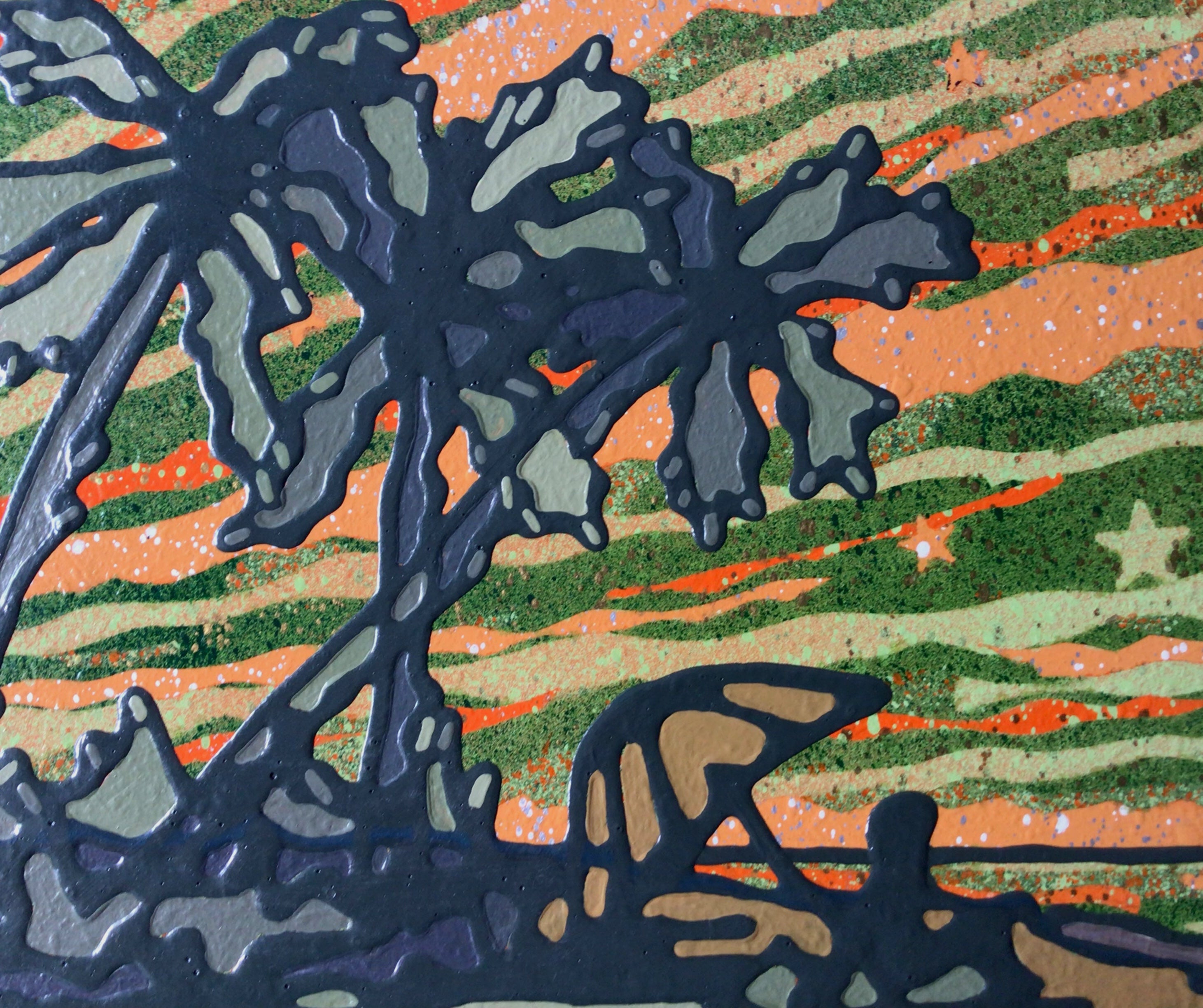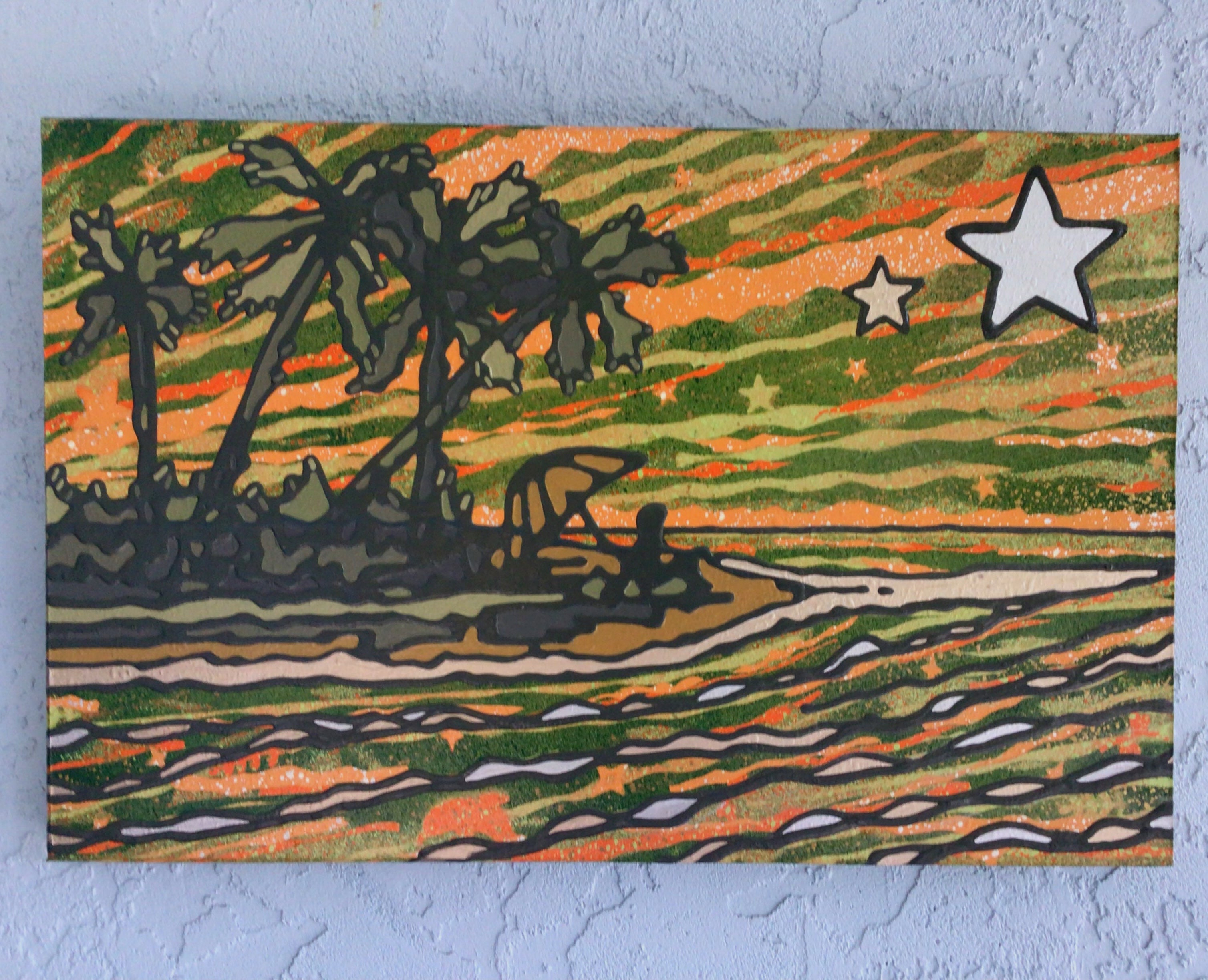 "A Ticket to the Late Show" - 25" x 16" Original acrylic and enamel on a fabric covered cradled wood panel.