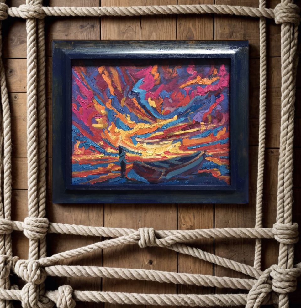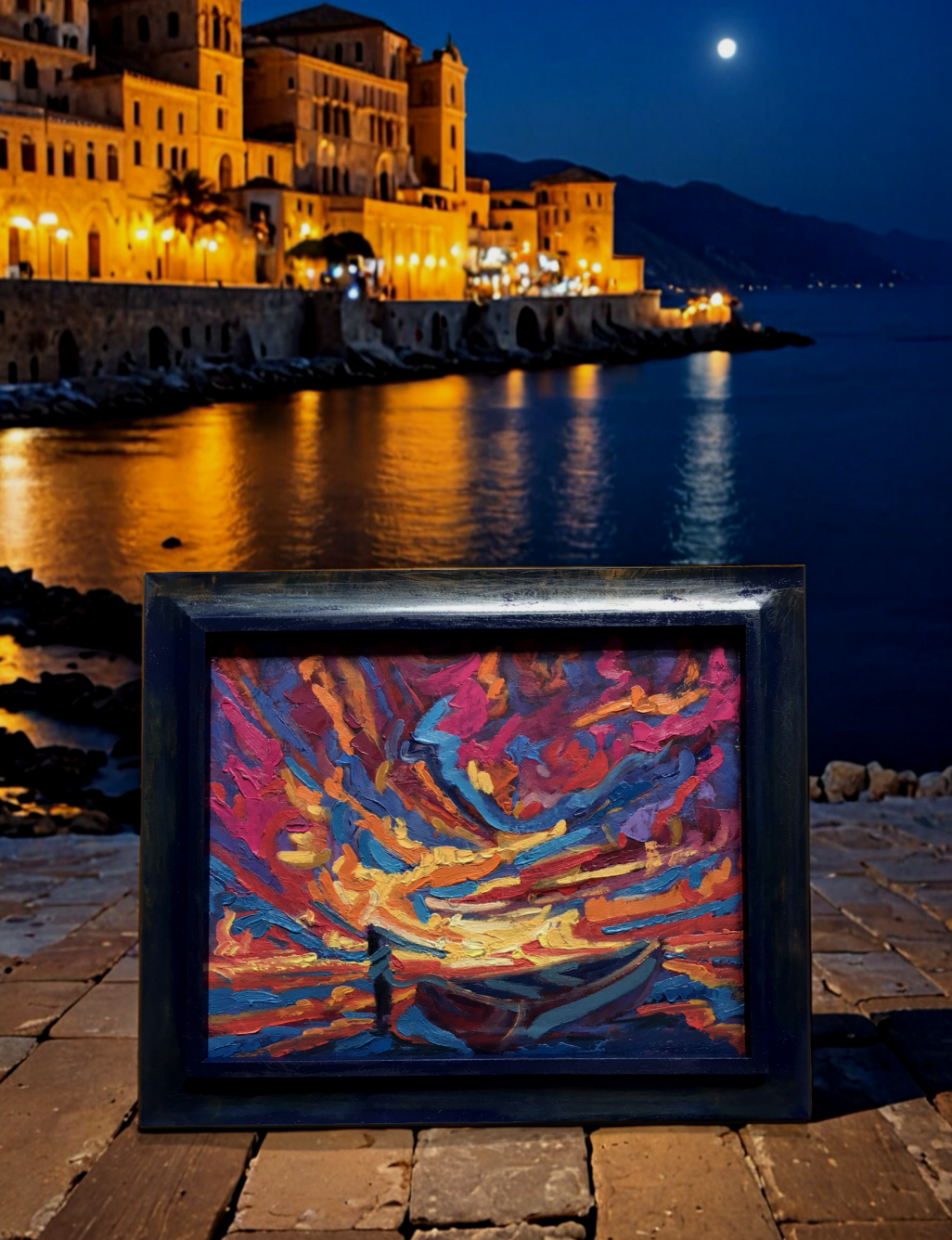 "La Laguna Colorata" - Original 12" x 10" oil on the reverse side of a canvas panel in a hand painted wood frame.