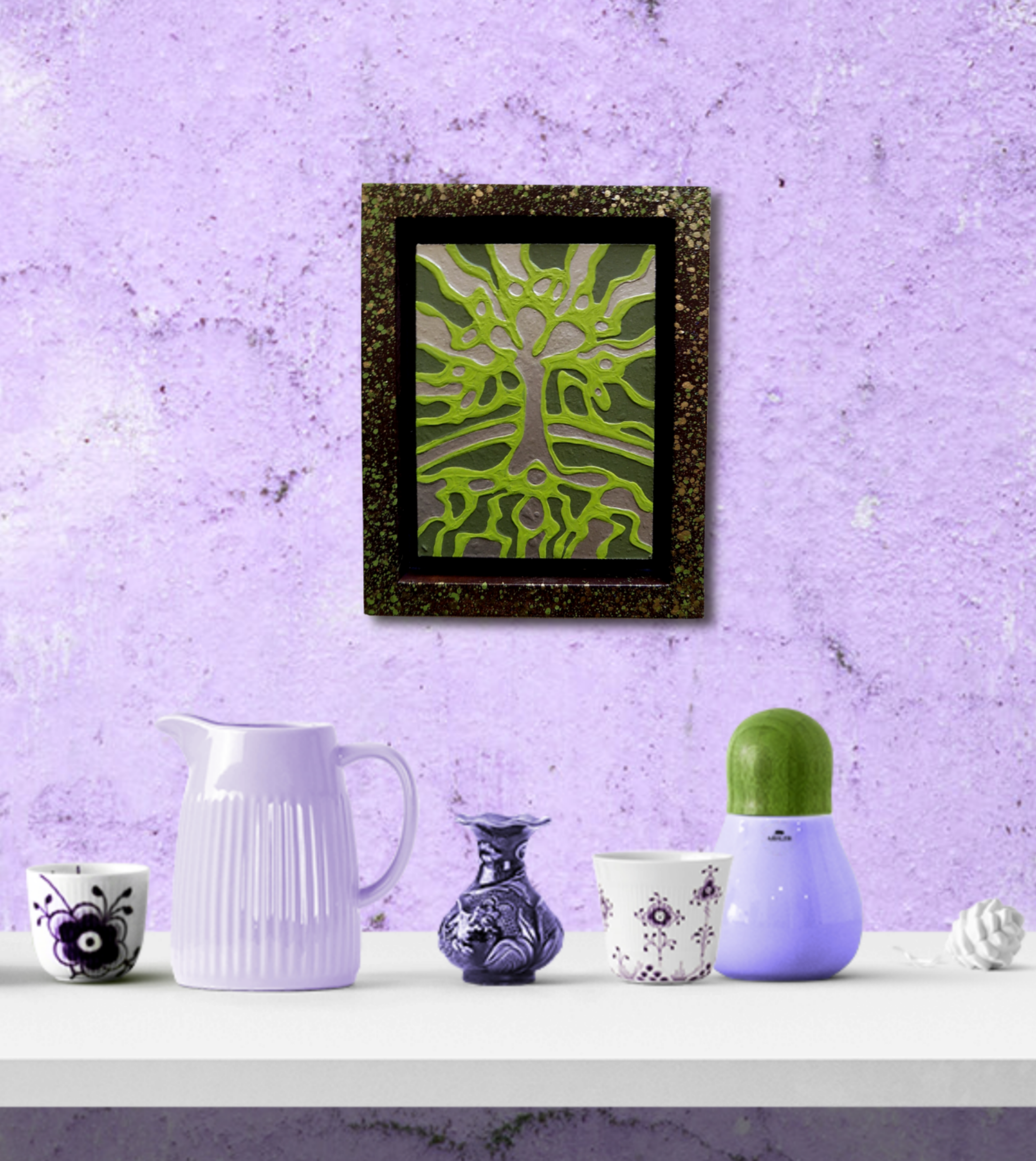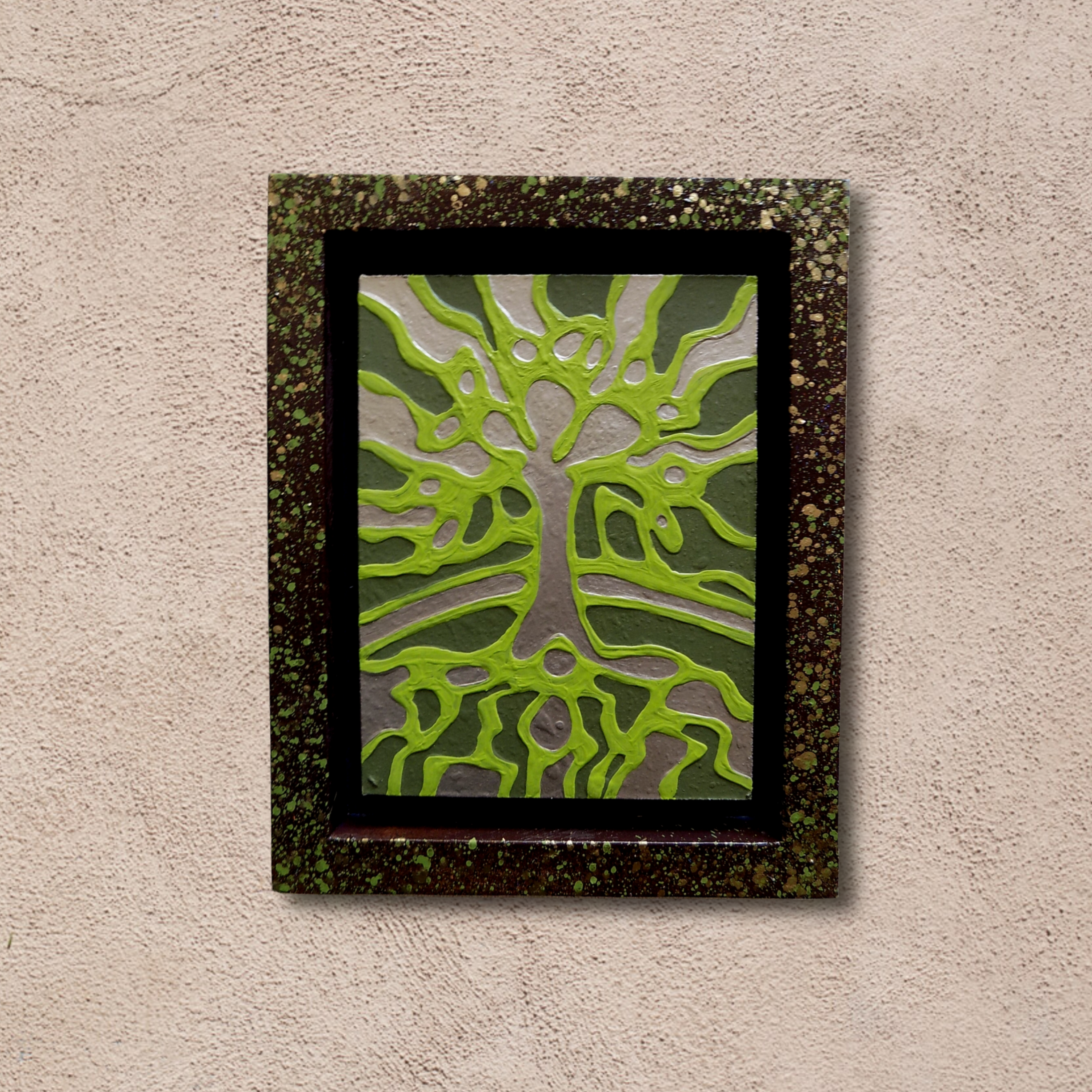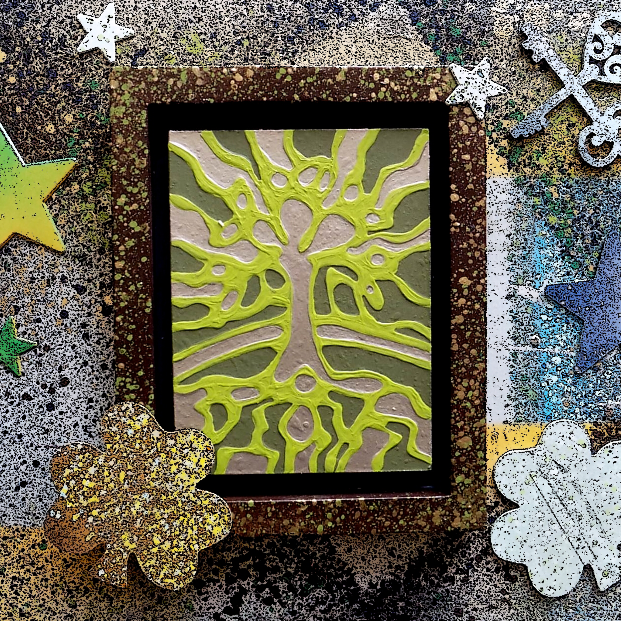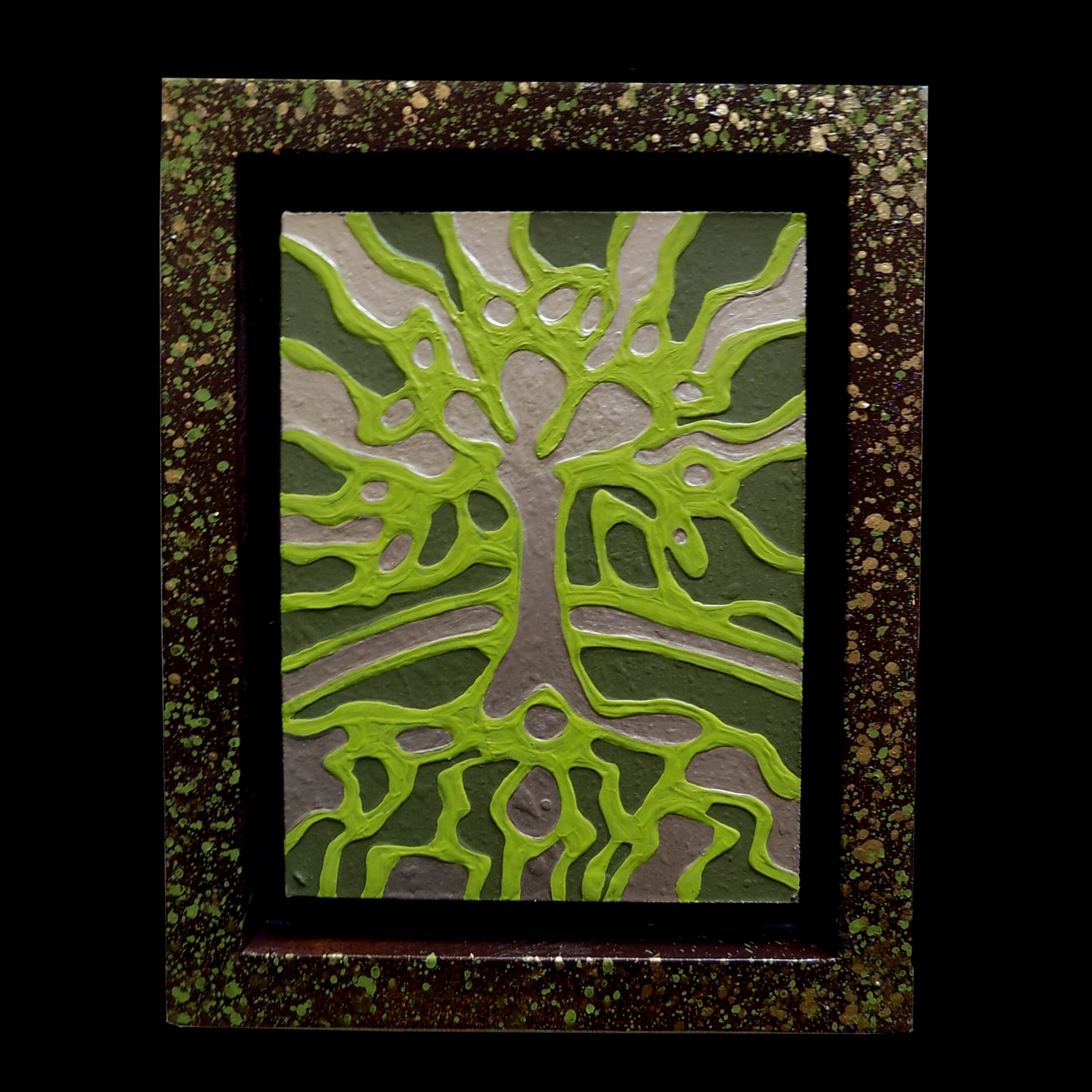 "Irish Gold" Original 8.75" x 11" acrylic and enamel on wood panel in a studio made, hand painted, natural pine frame
