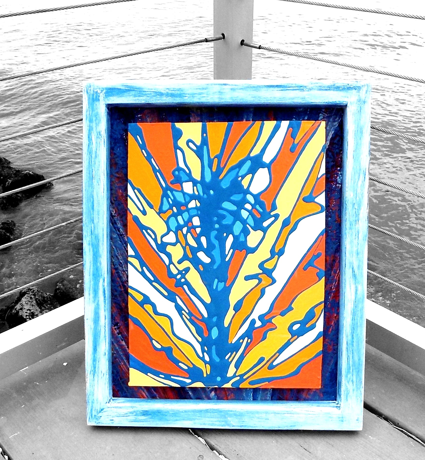 "Let the Spirit Move You" Original 17.25" x 21.25" (framed dimension) acrylic and on a scrap plywood panel in a studio made, hand painted, natural pine frame that is ready to hang.