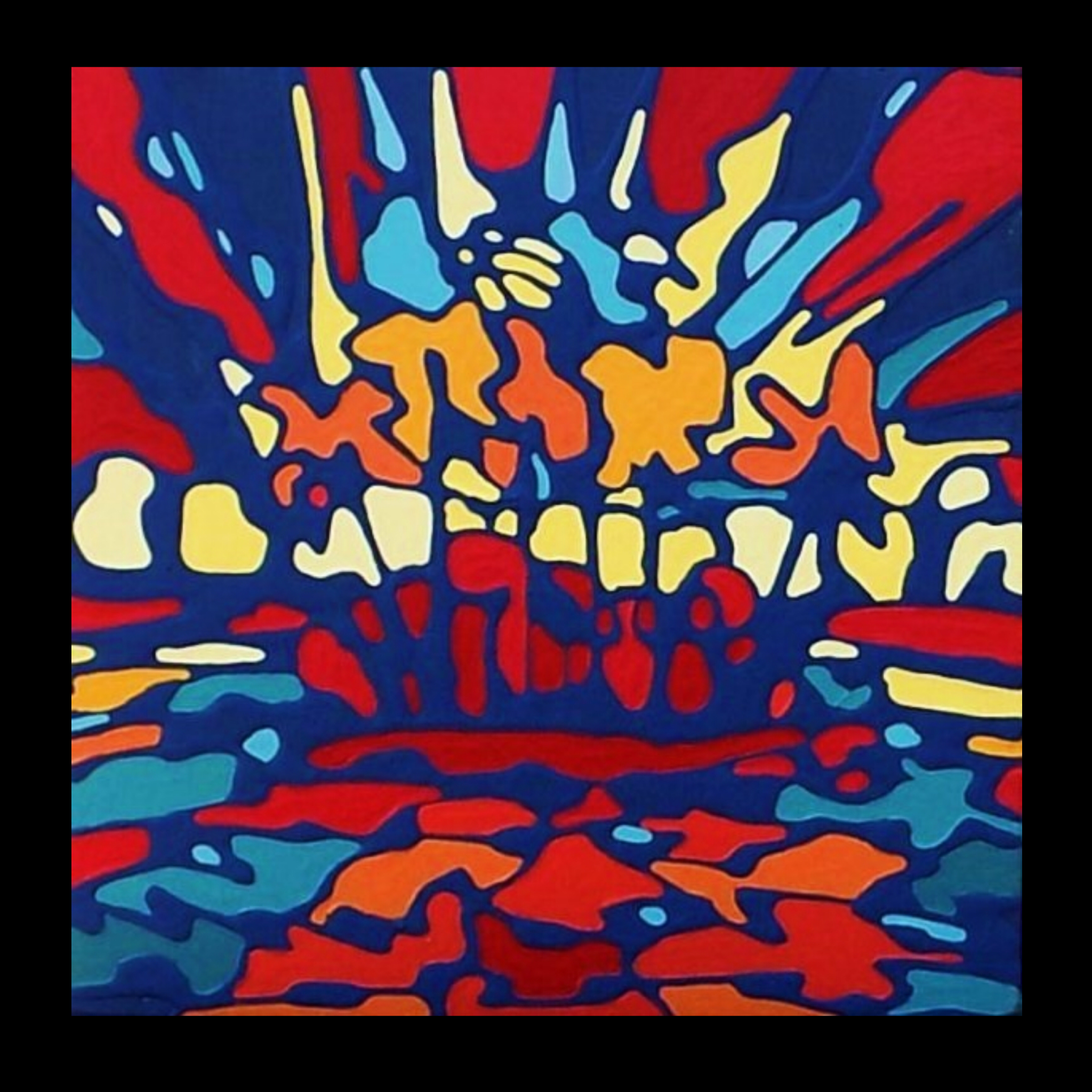 A expressive, colorful, modern impression bordering on the abstract.  Strong contrast and shadows provide a mood of reflective joy in occasional solitude.   Painted using acrylic on a studio made cradled wood panel.