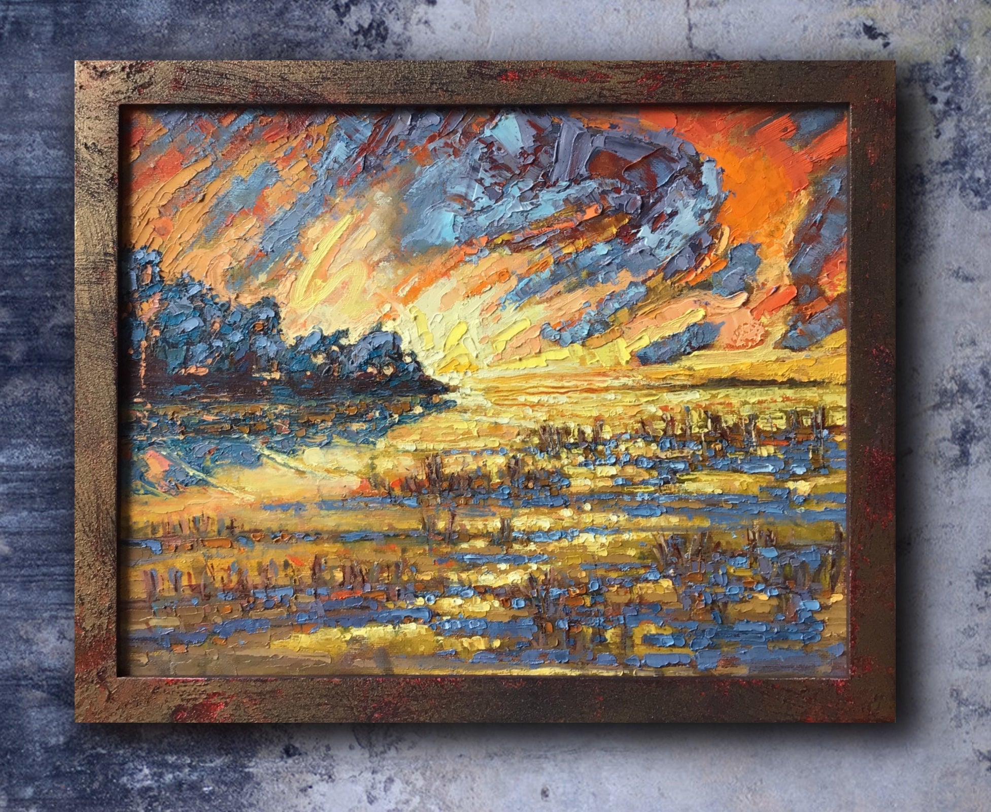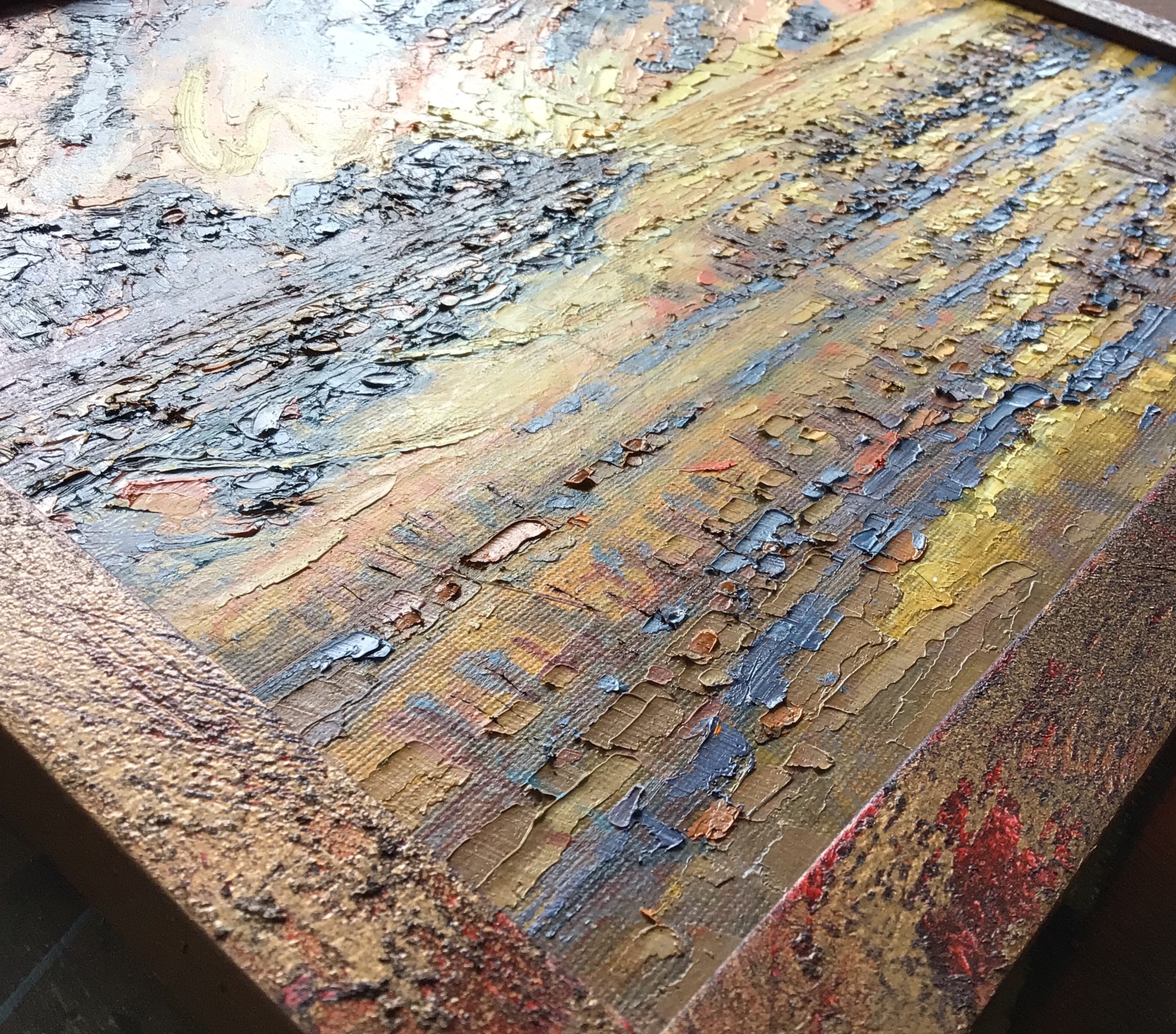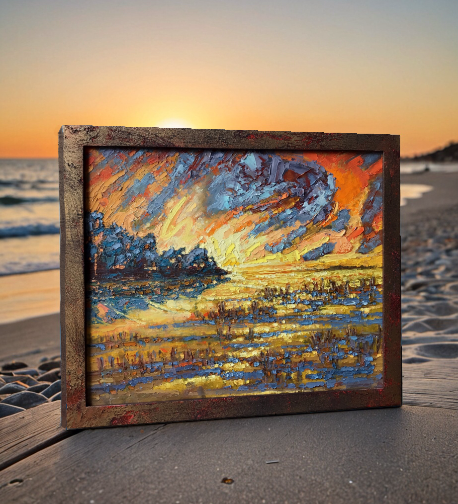 "Spectrally Speaking" Original 15.25" x 12.25" (Framed Dimension) oil on canvas panel in a custom painted natural pine frame.