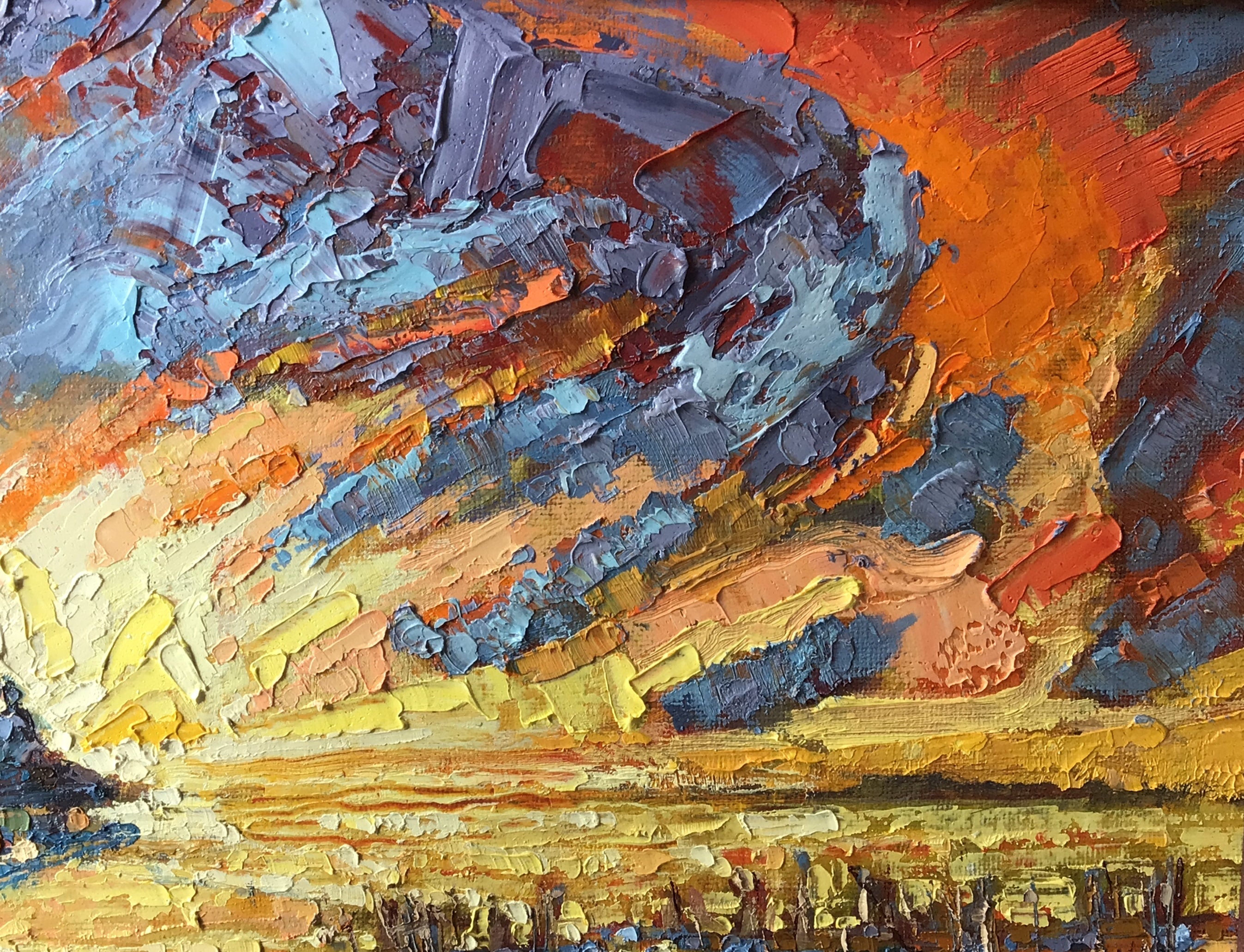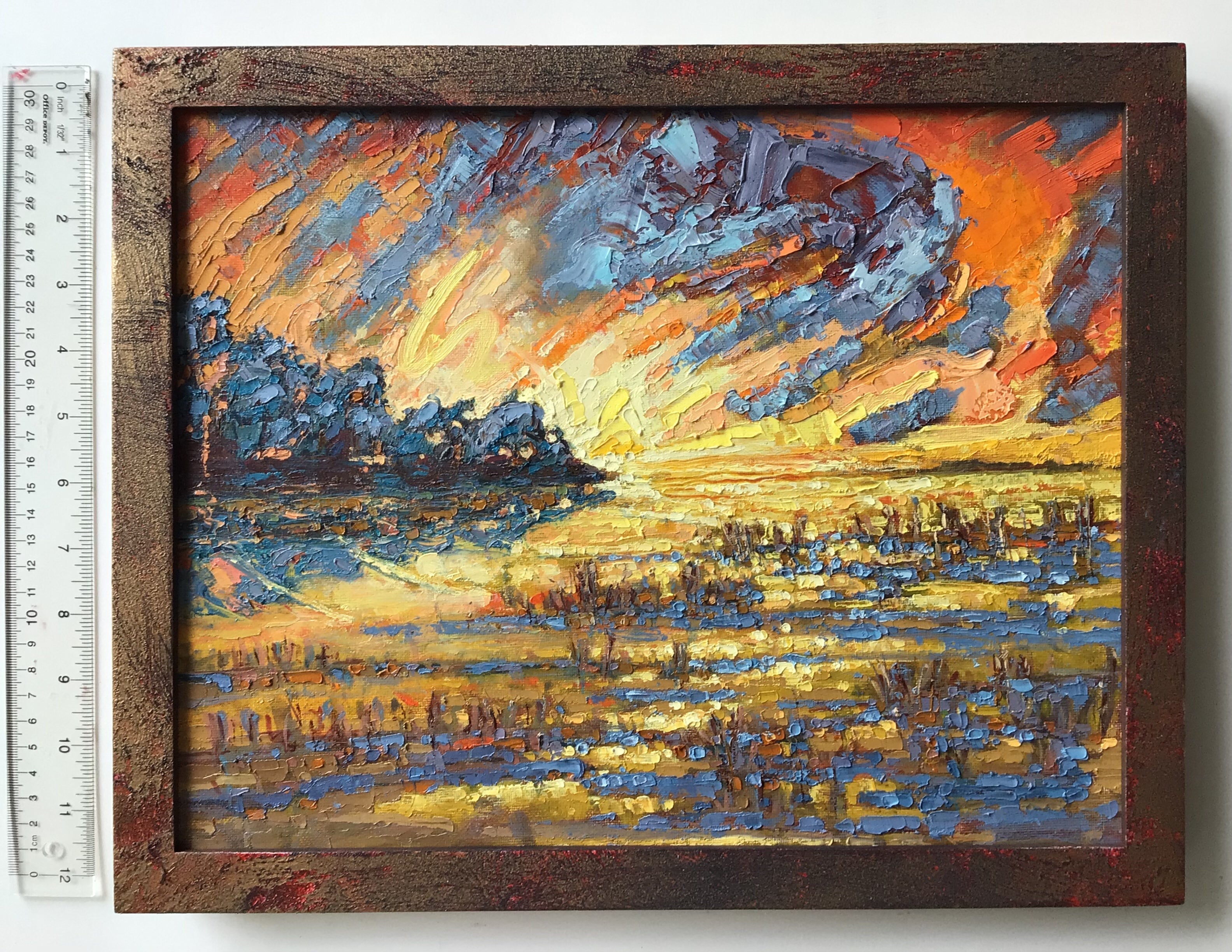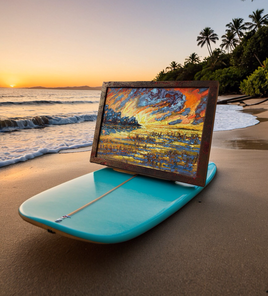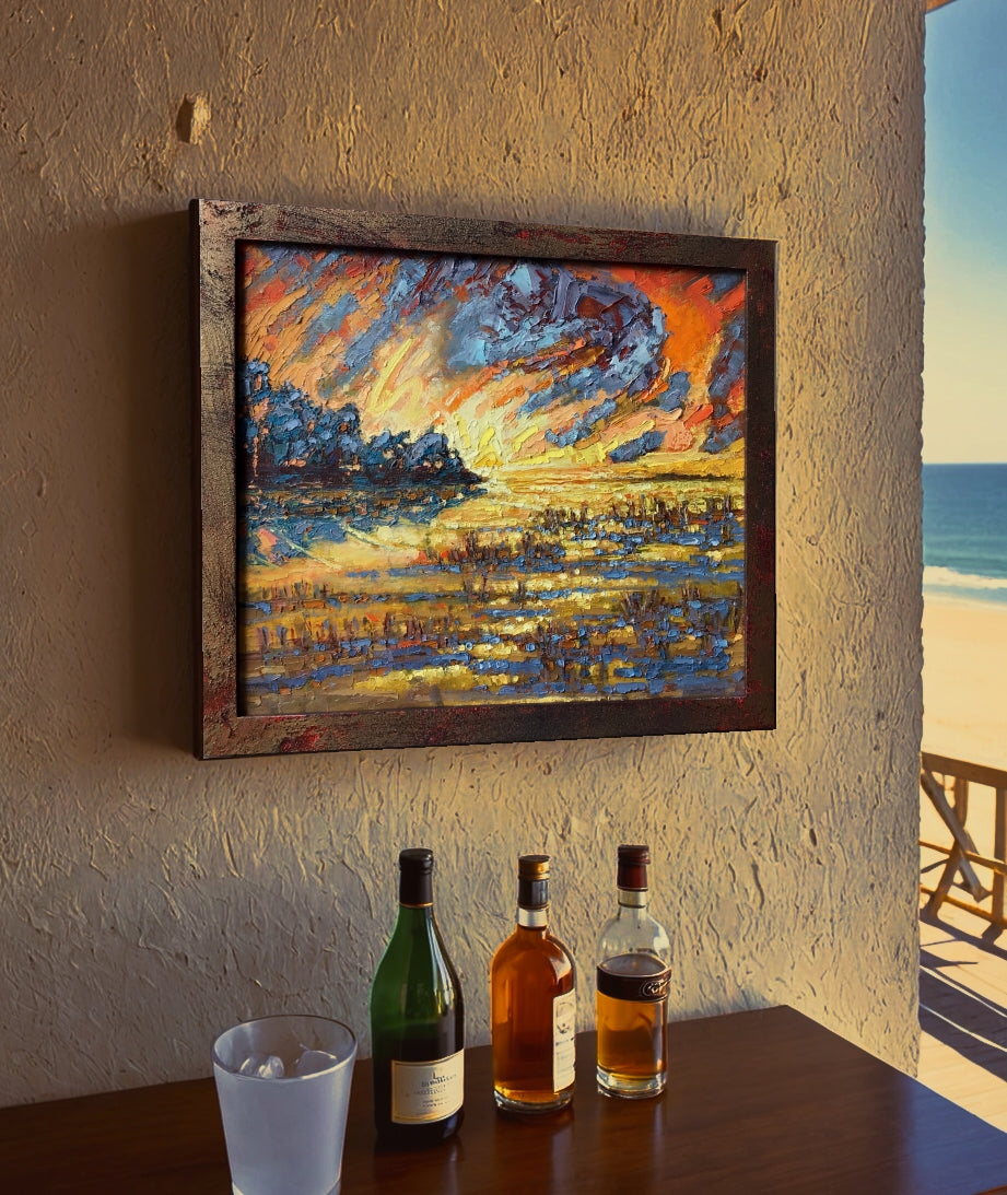 "Spectrally Speaking" Original 15.25" x 12.25" (Framed Dimension) oil on canvas panel in a custom painted natural pine frame.