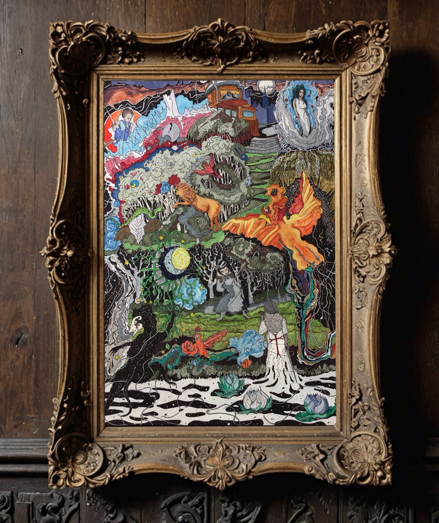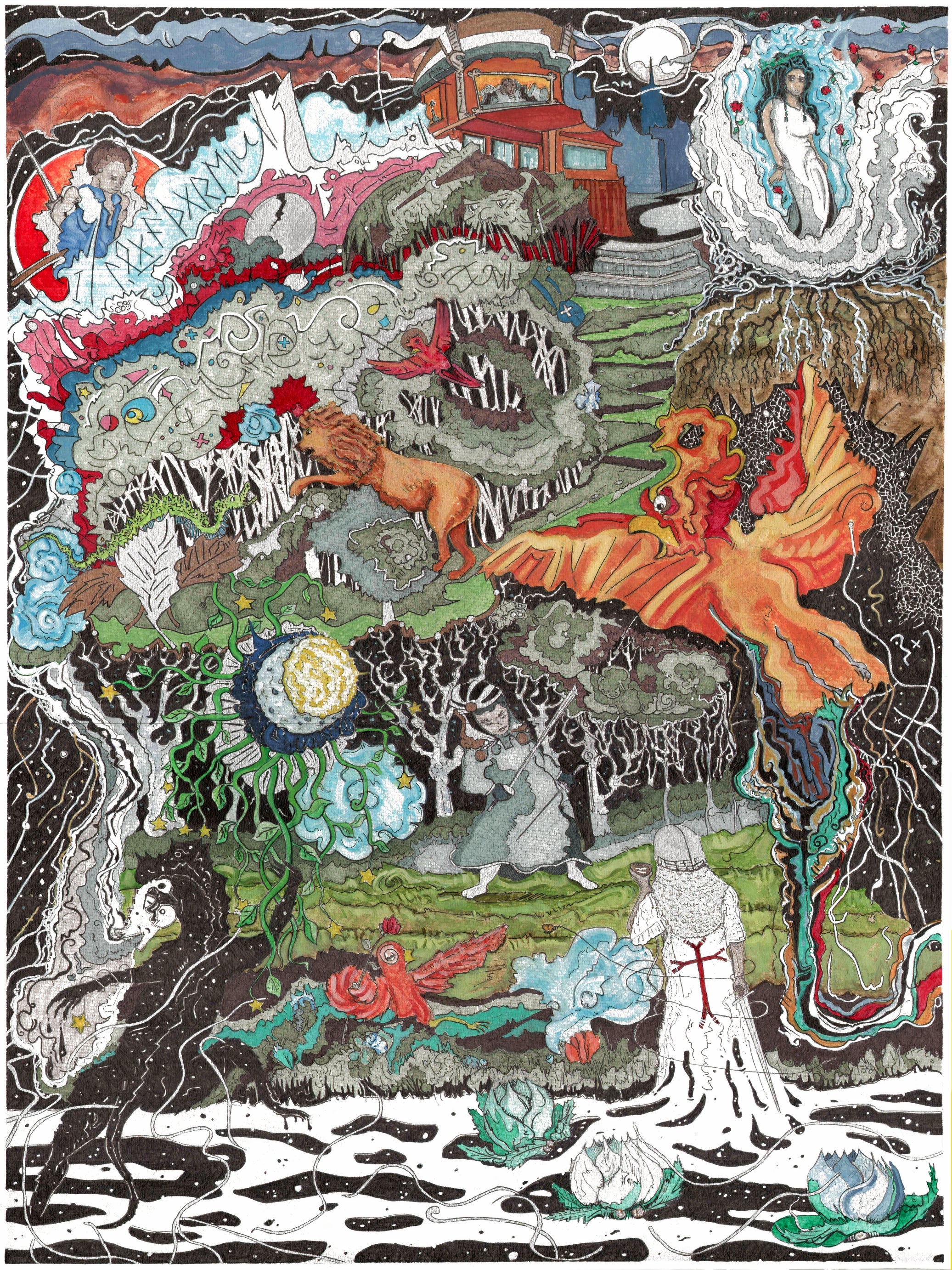 On the opposite side, through a gleaming tear in reality, emerged Sir Caelum, the White Knight. His armor, emblazoned with the red cross of the Knights Templar, shimmered like a beacon against the encroaching darkness. In his left hand, he held the Chalice of Aeternum, a golden goblet said to contain the wisdom of the ages. His right hand clasped the hilt of Luxblade, the sword of peace and justice, its tip resting gently against the earth as a sign of non-aggression..... See the rest of the story at: https://pictorislore.com/