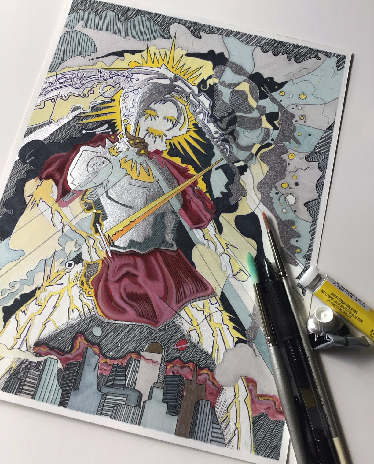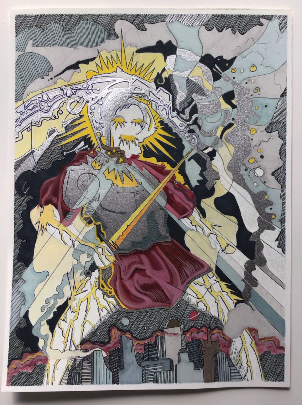 "Archangelo" - 9" x 12" Original watercolor and ink on paper *** The frame is not included ***