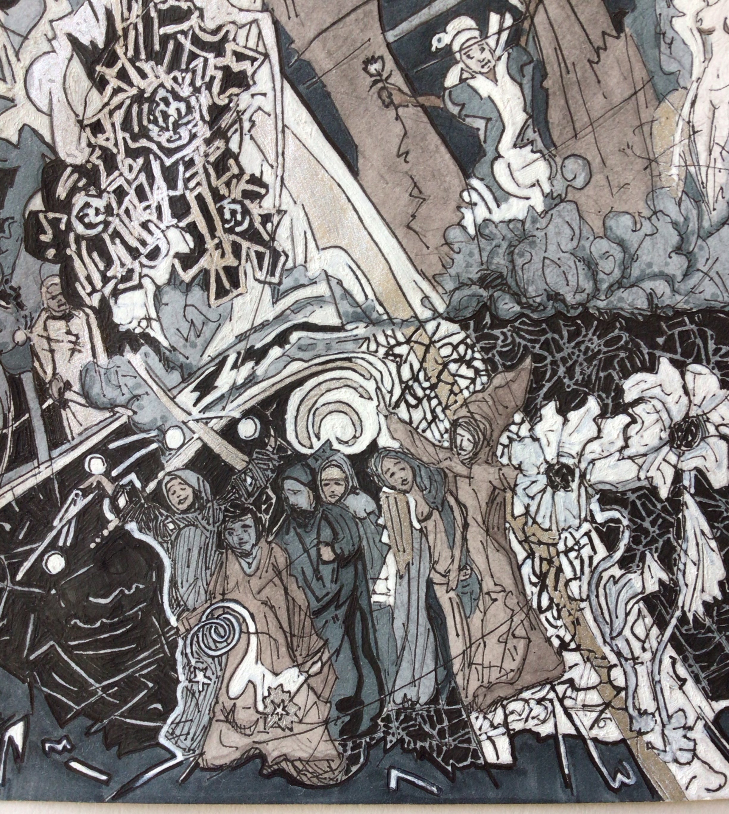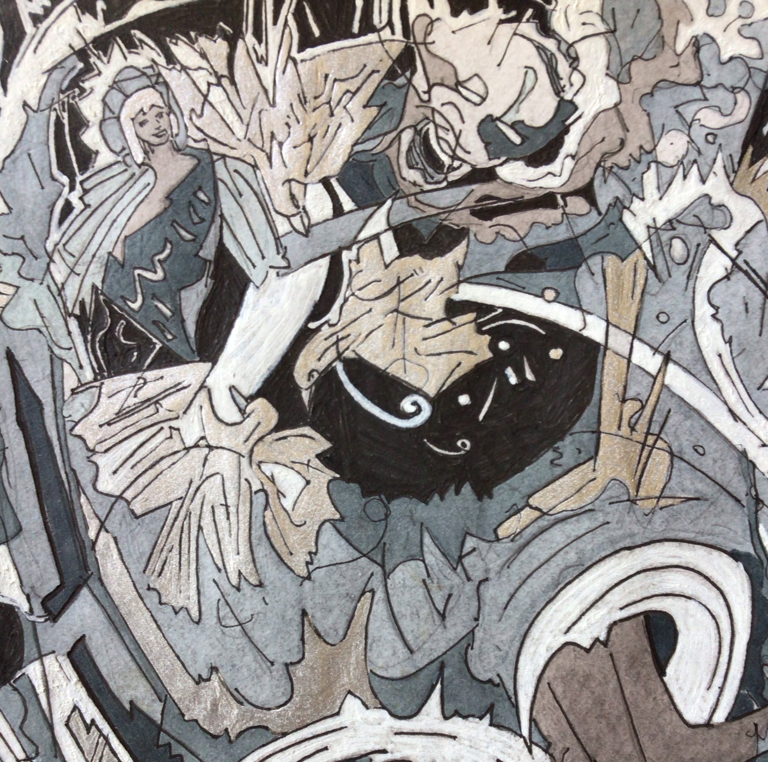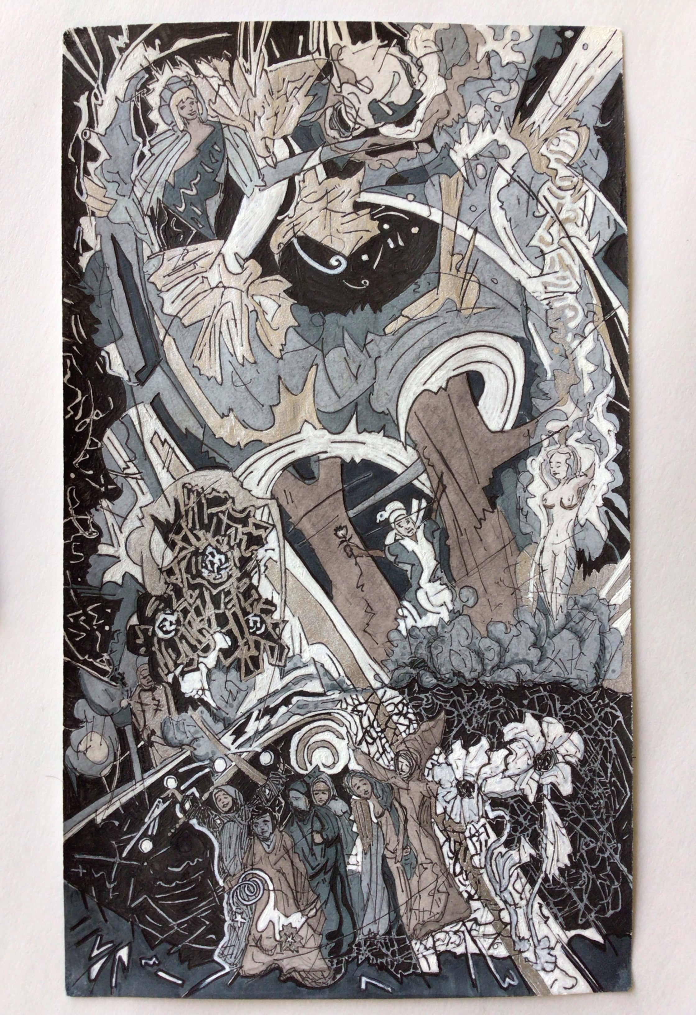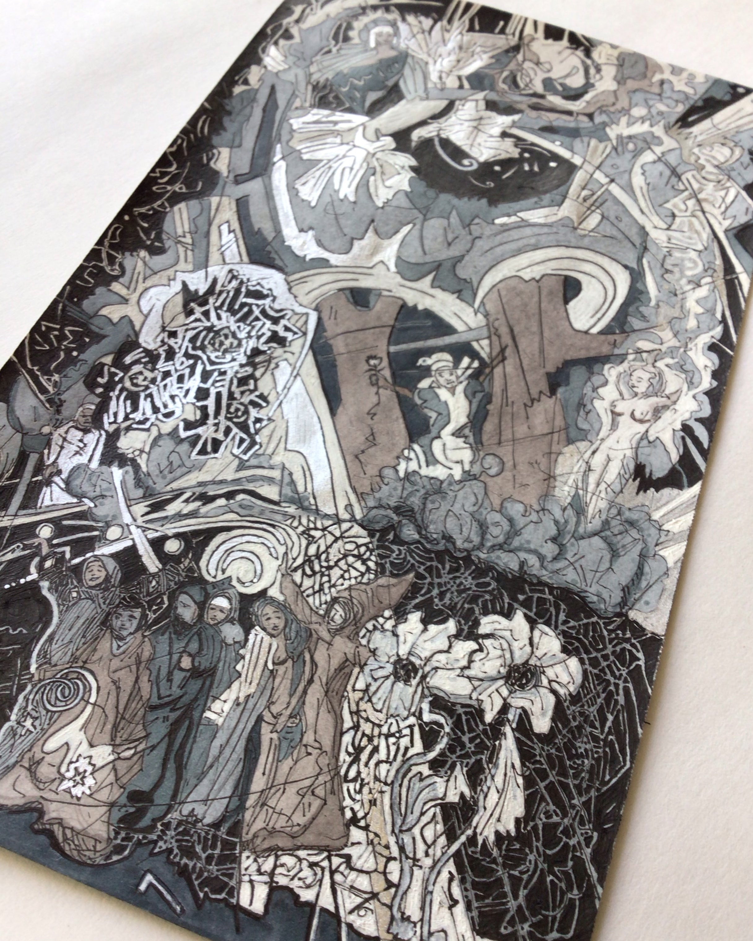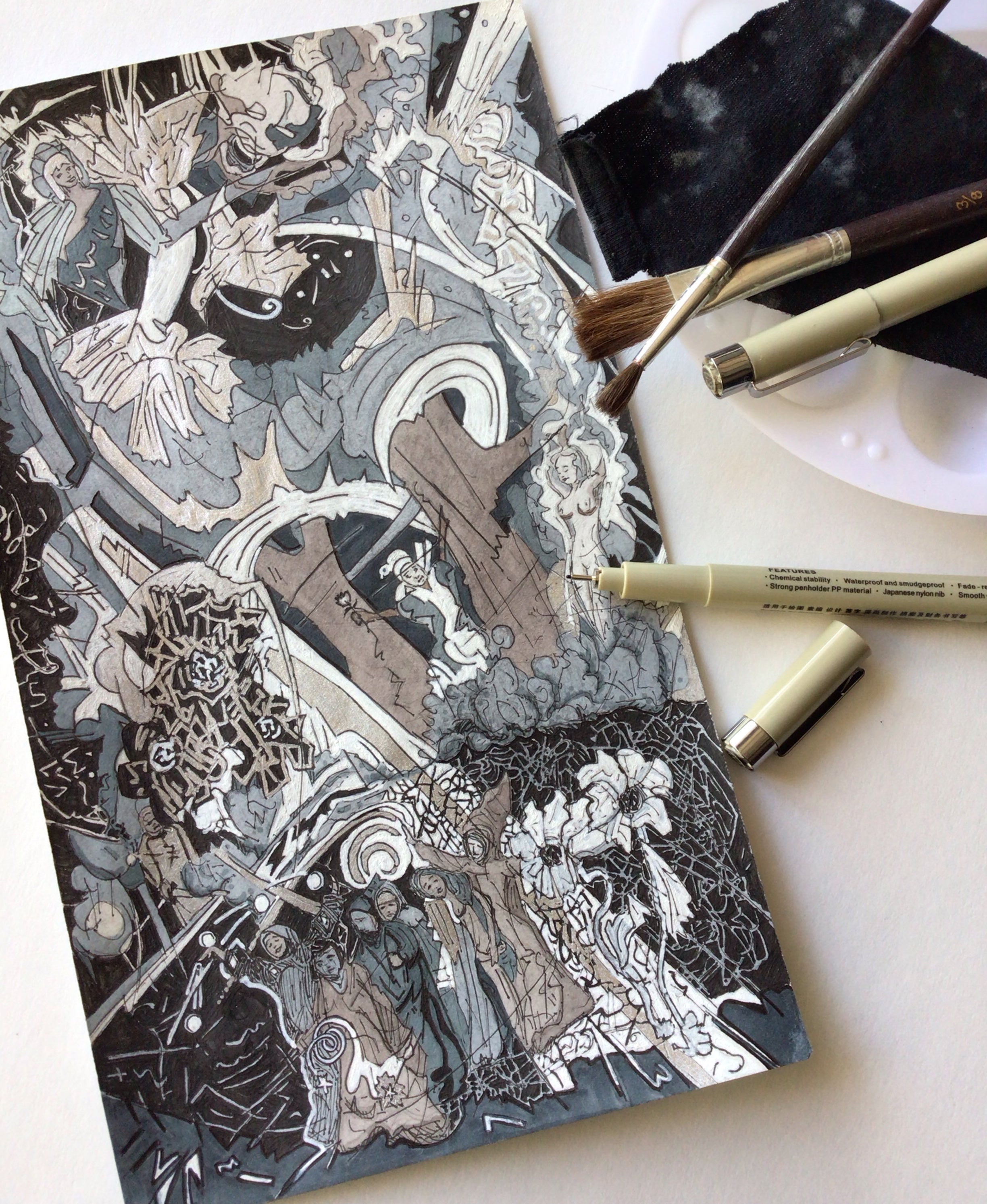 "Garden Party" 5.5" x 9.5" Original Ink on Paper.