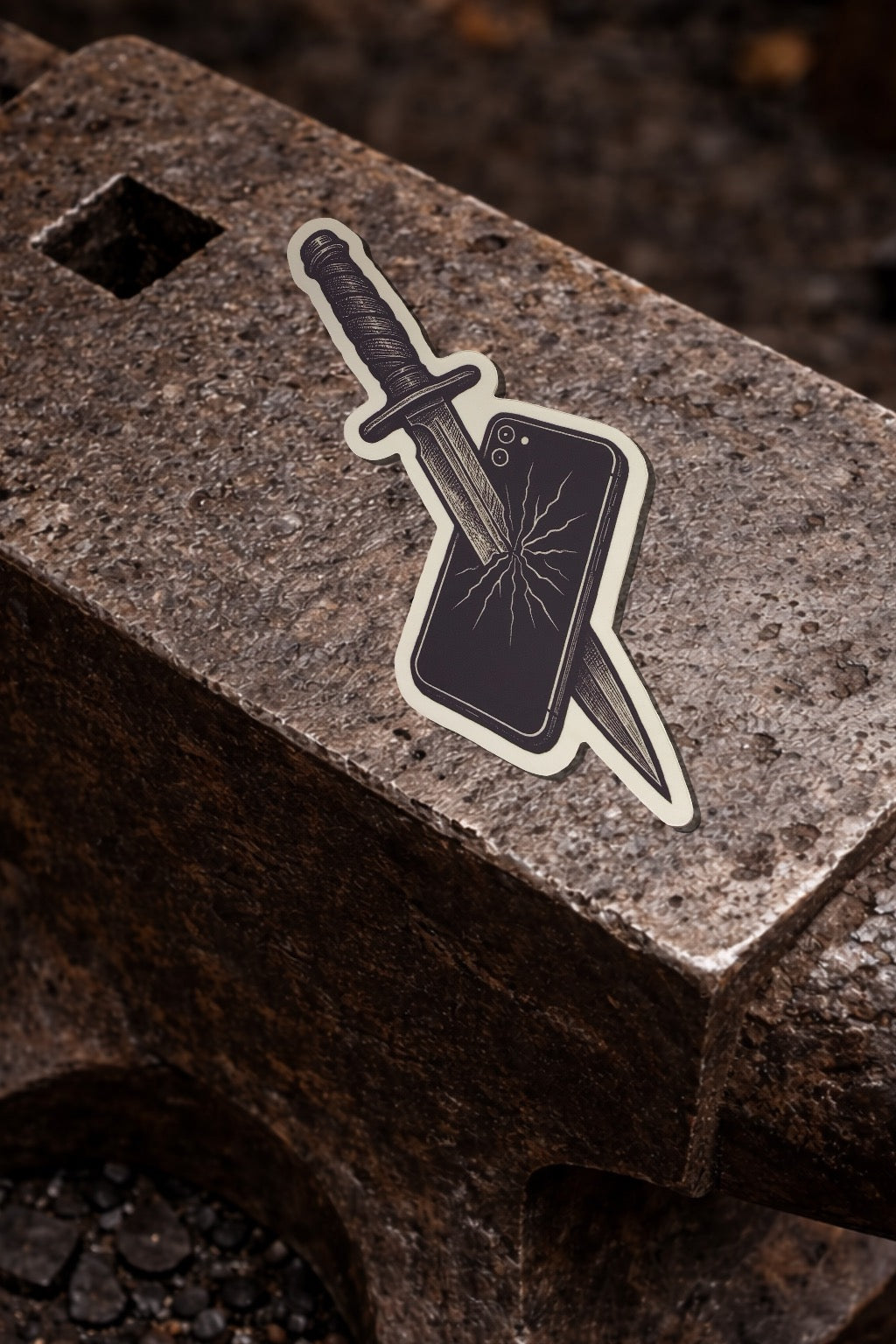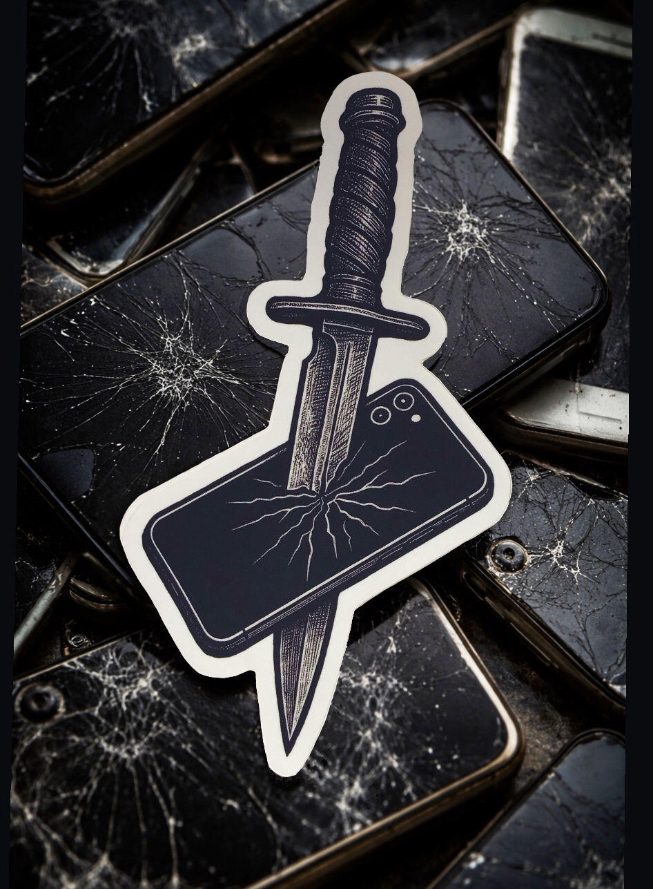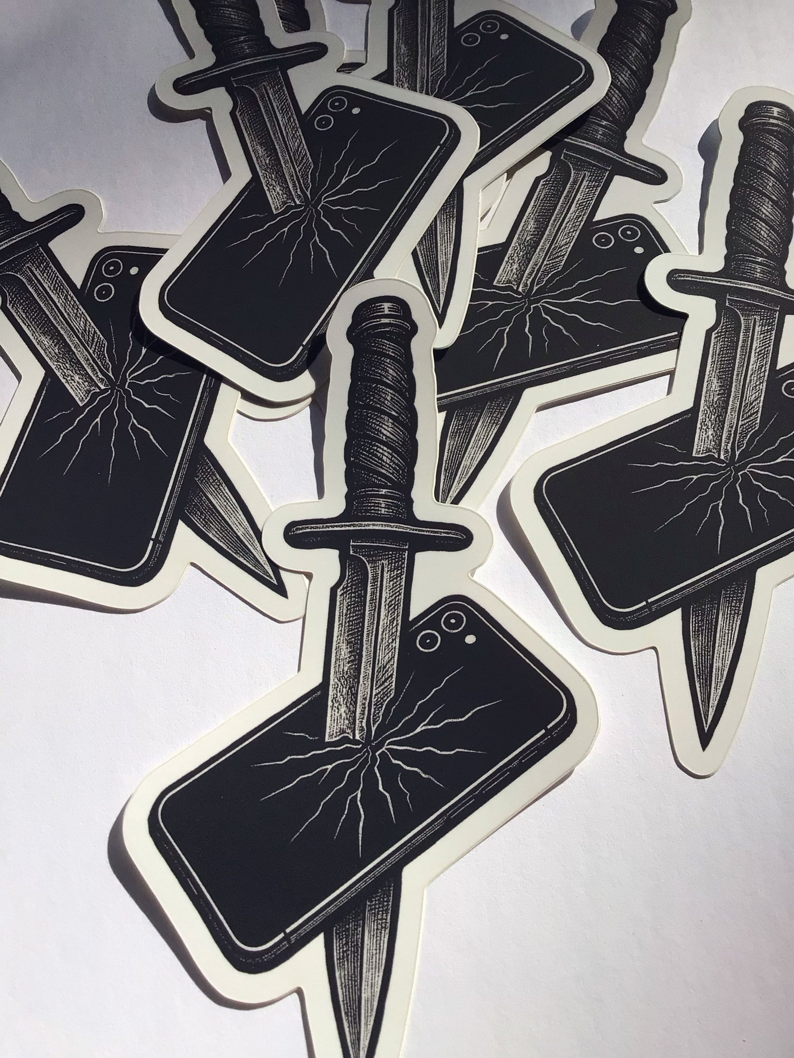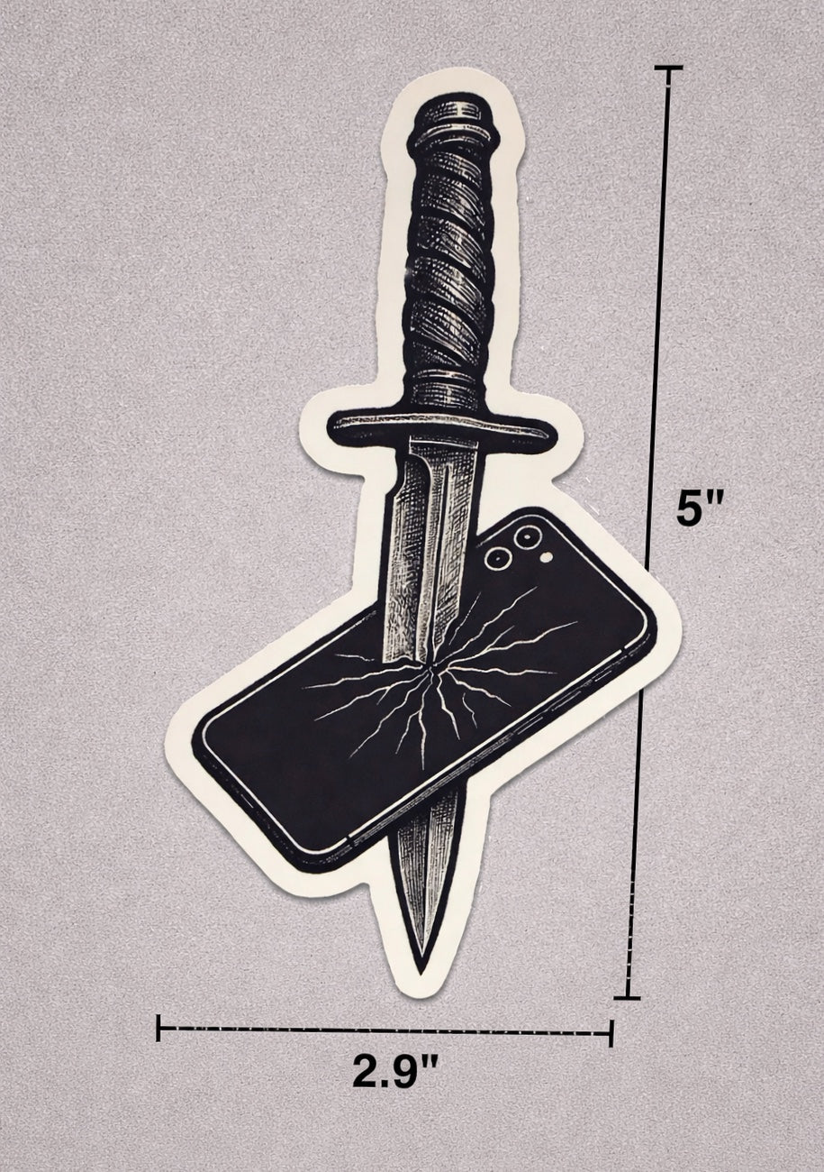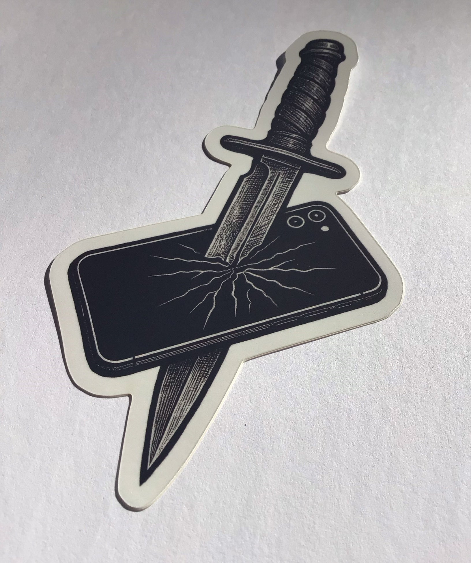 "Dagger and Phone" - 2.9" w x 5" h Die-cut Matte Vinyl Sticker