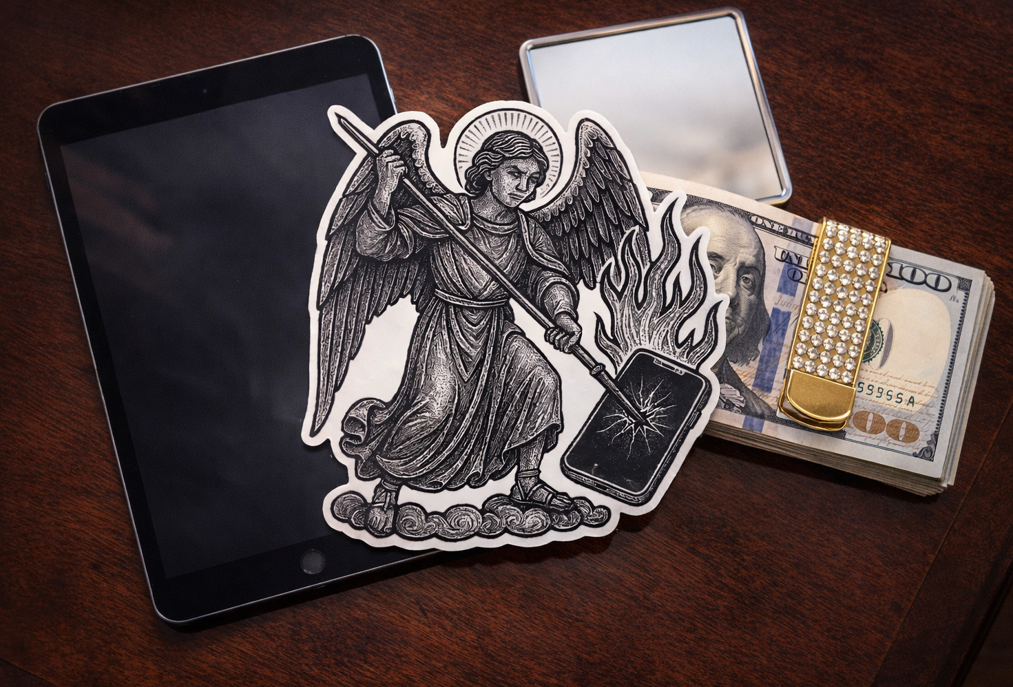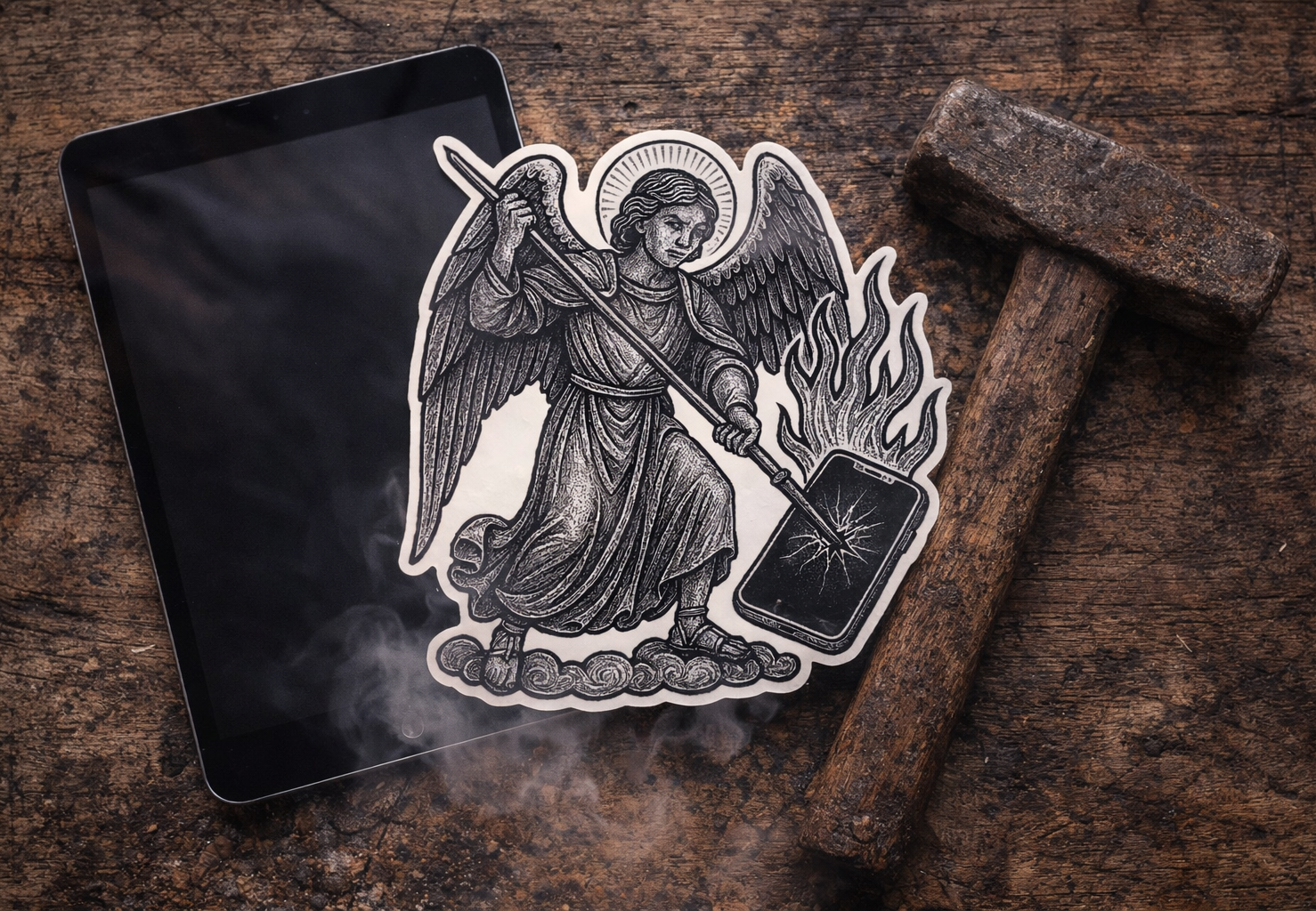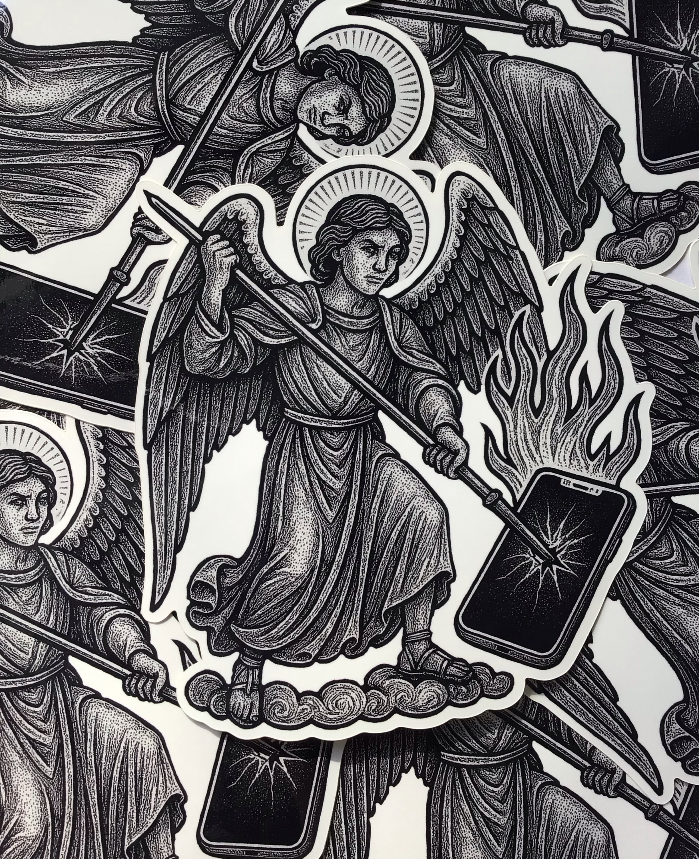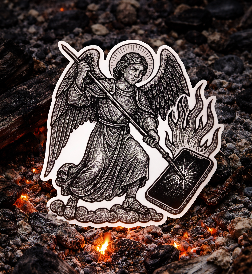 "Angel and Tablet – The Idol Cast Down" - Sticker