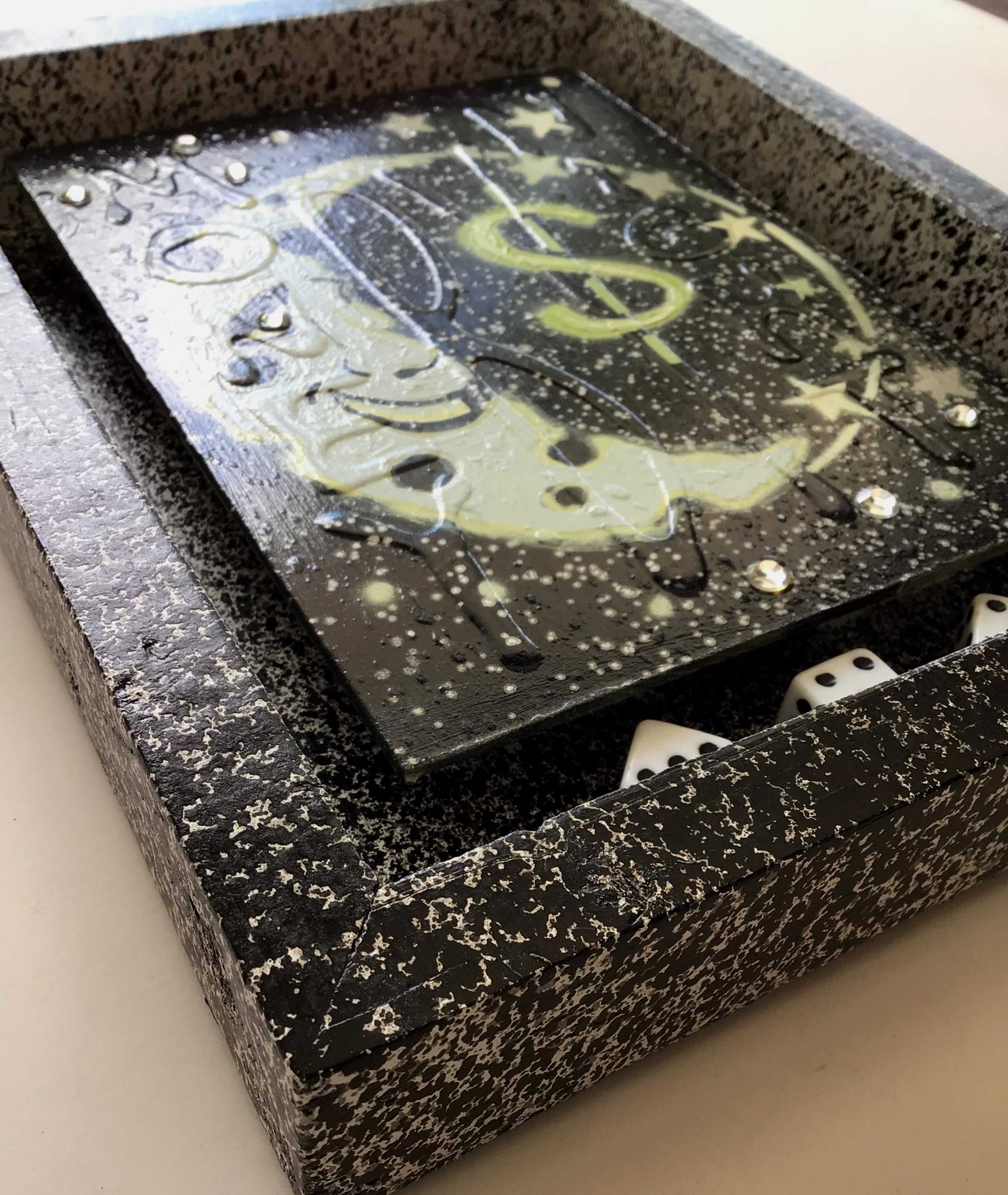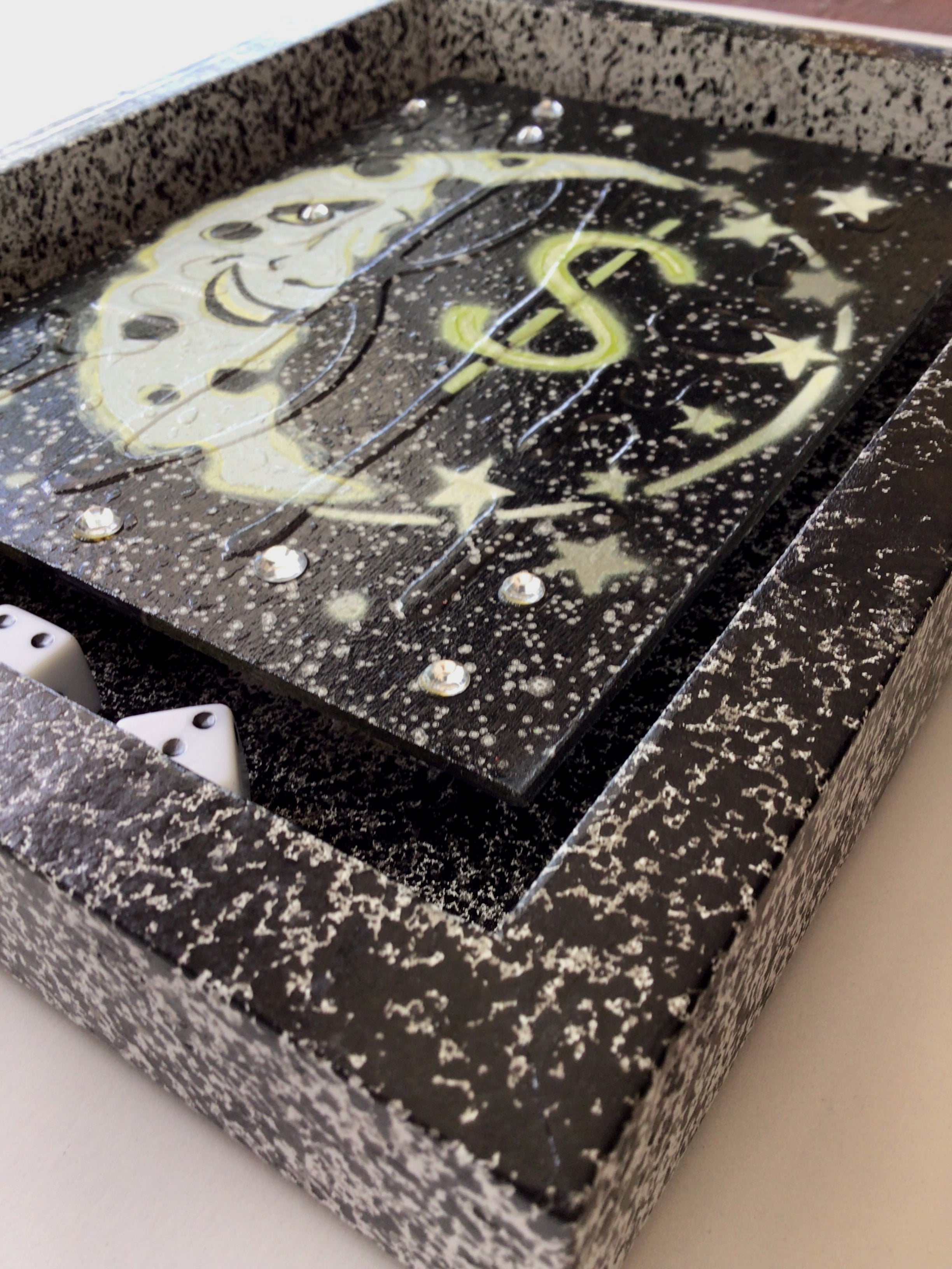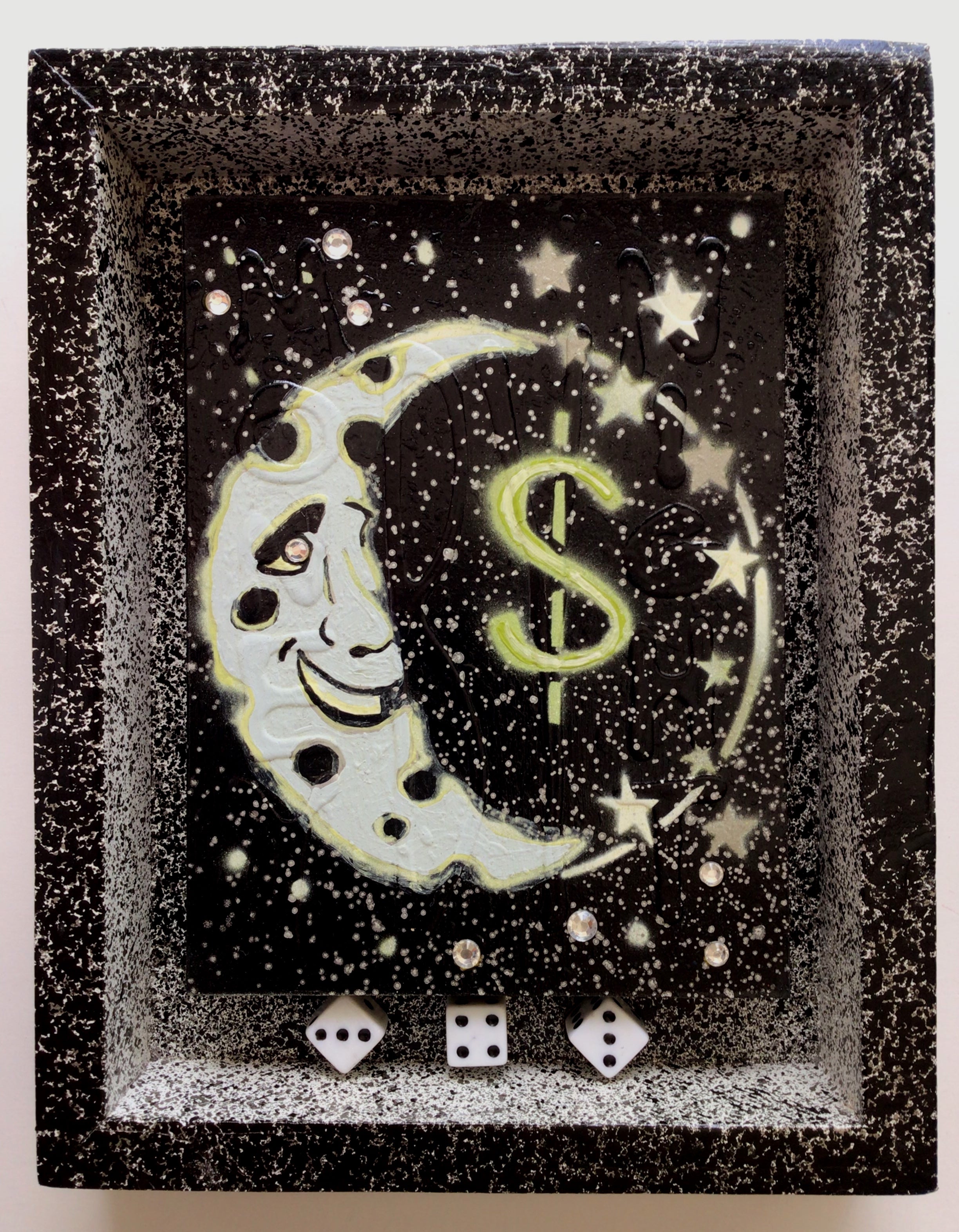 "Money By Night" 8.5" x 11" - Mixed medium on a wood panel in a studio made, painted natural pine frame.