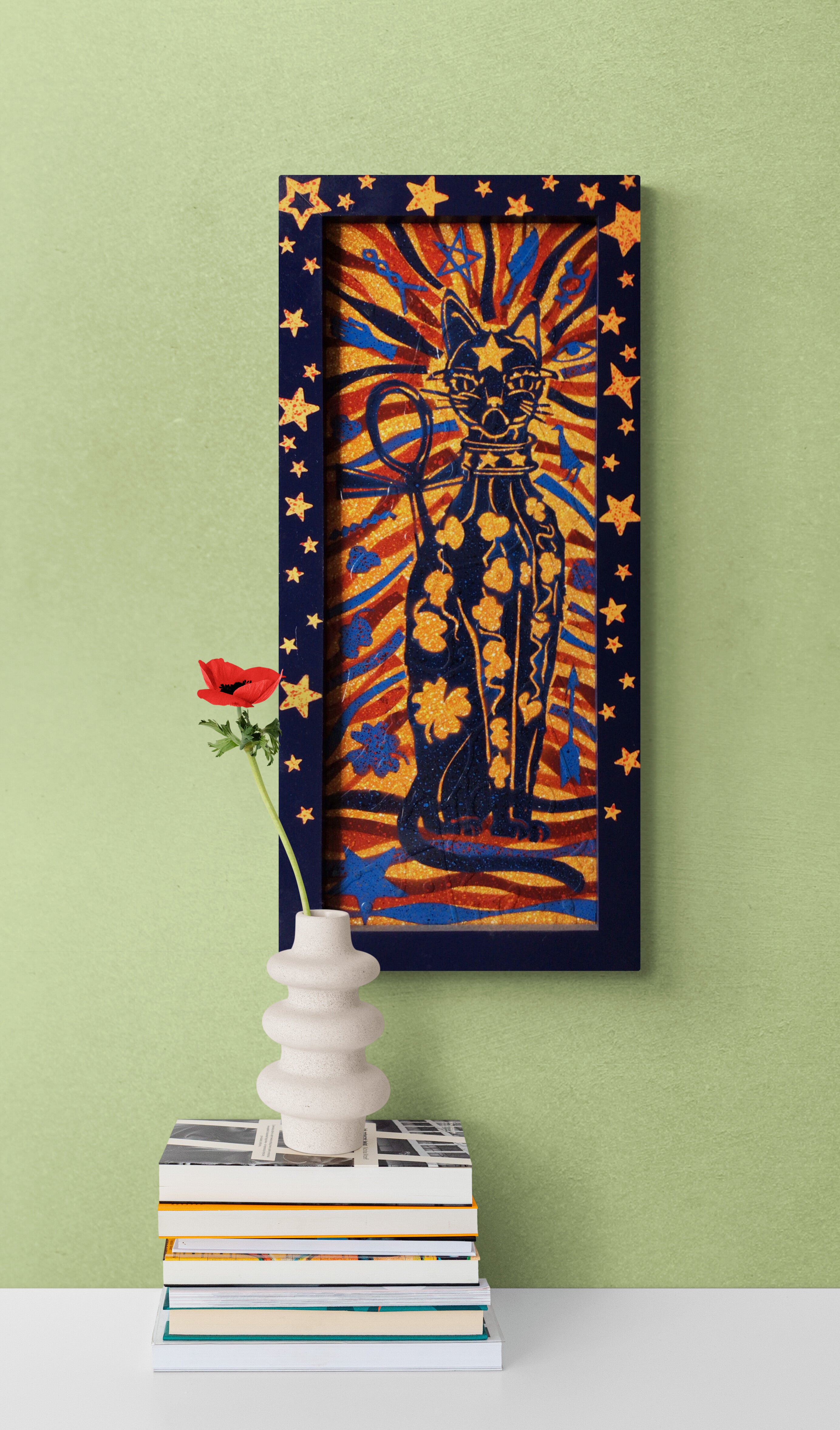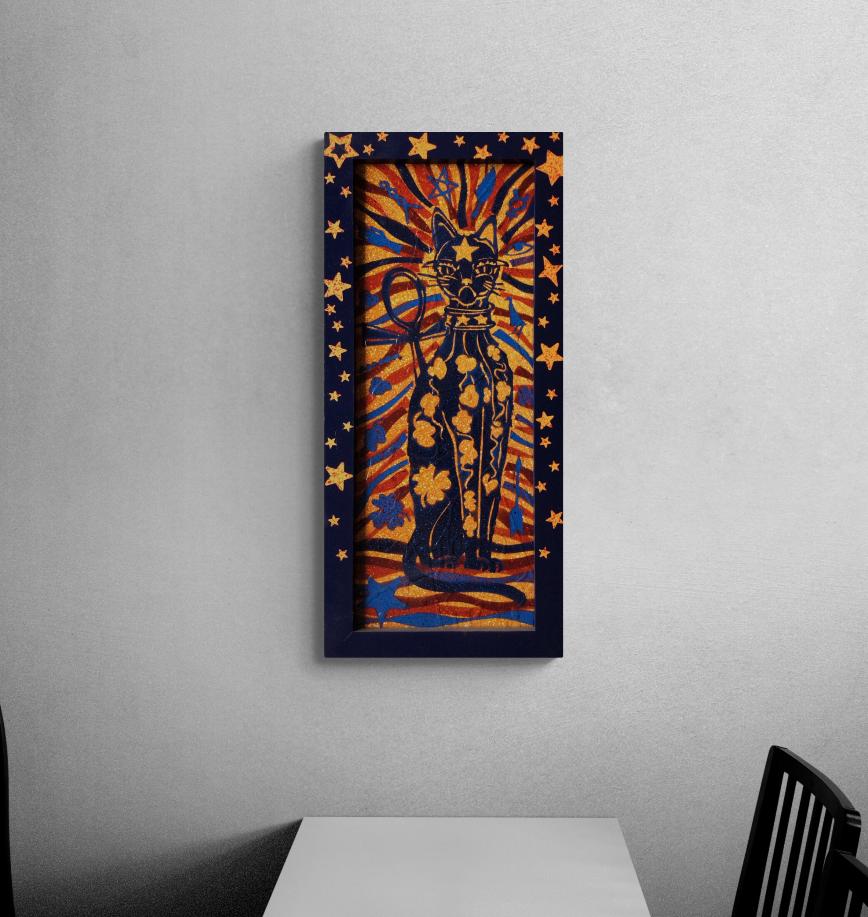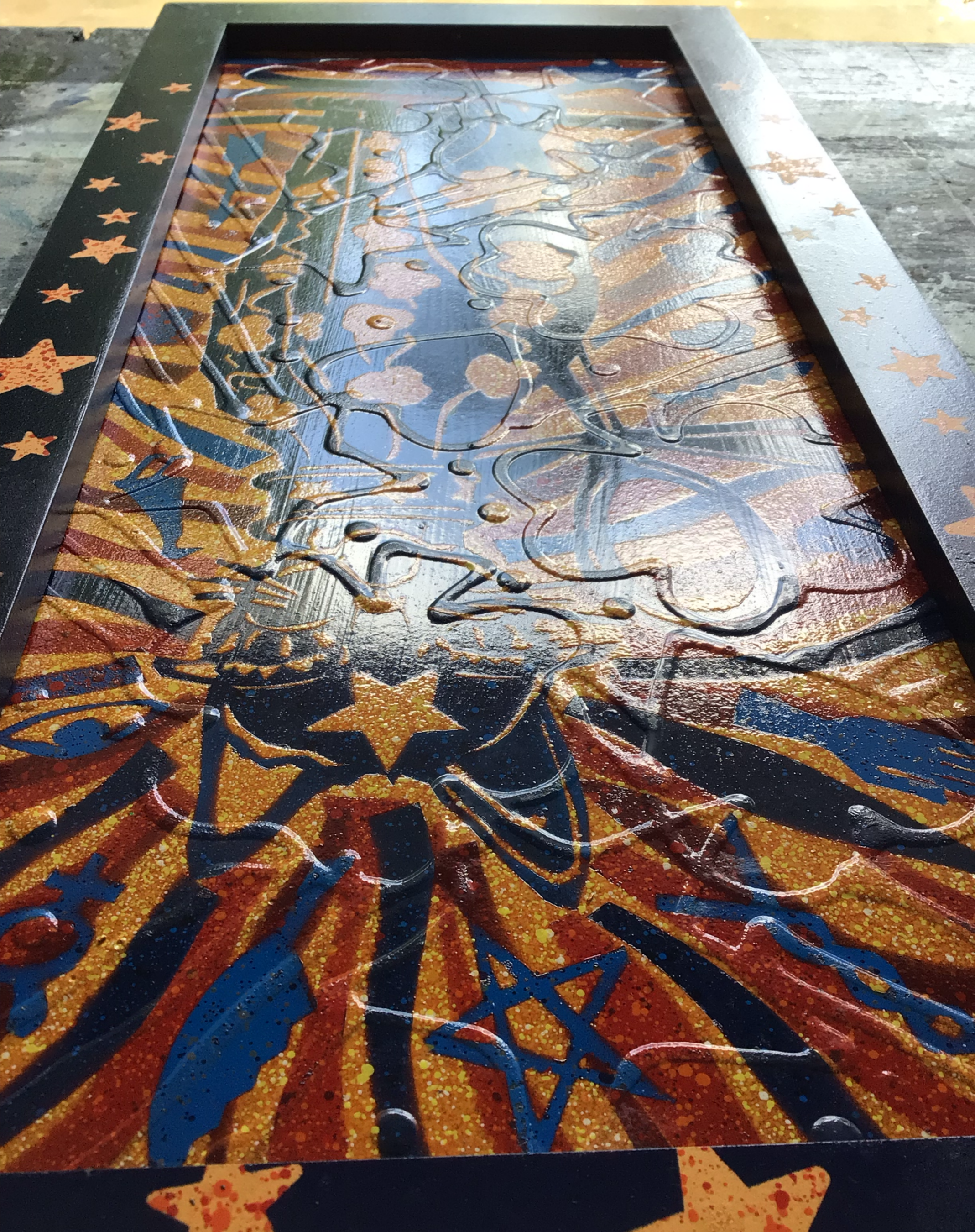 "Pedigree" Original 12" x 27" (framed dimension) acrylic and enamel in a studio made, hand painted frame.