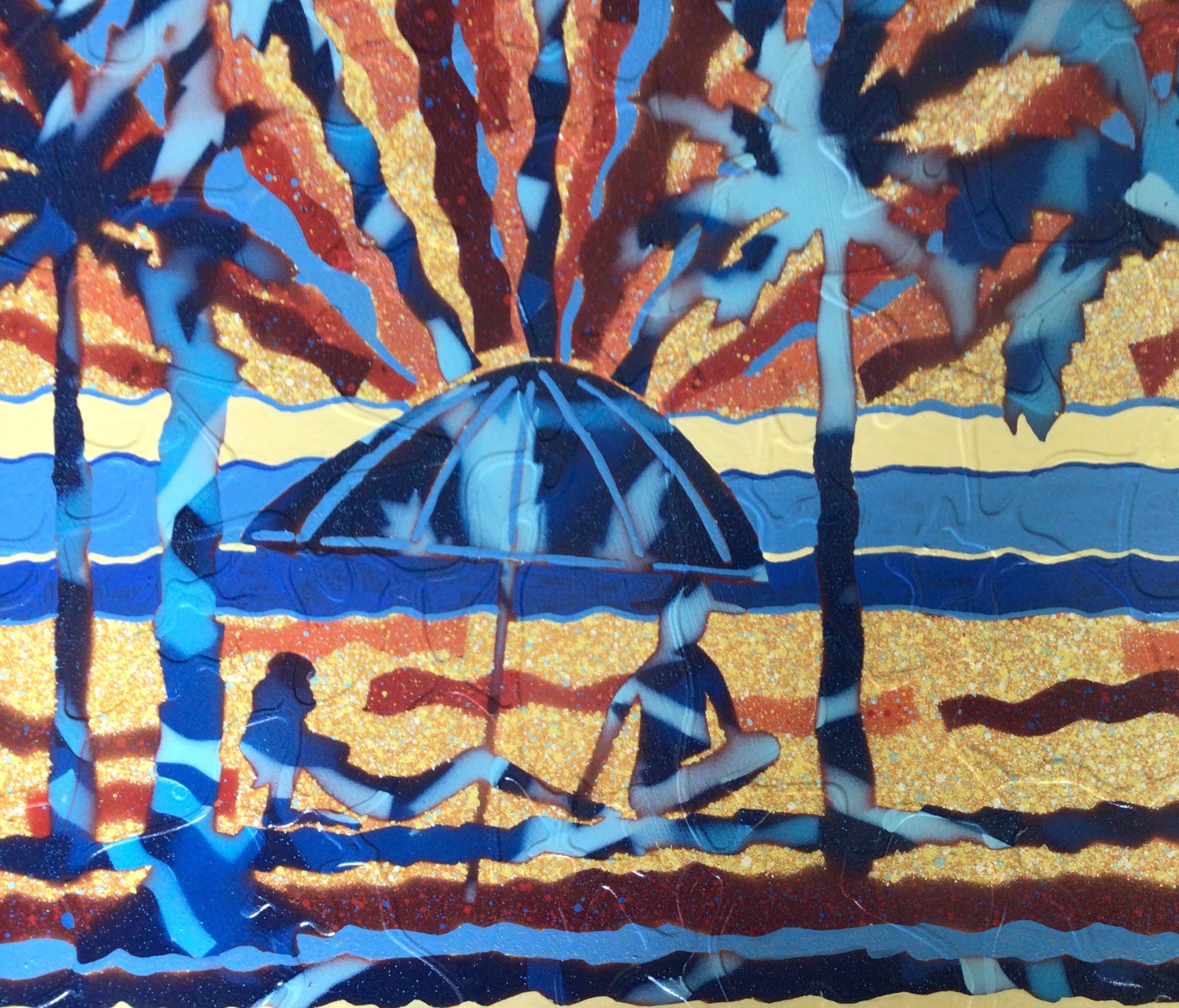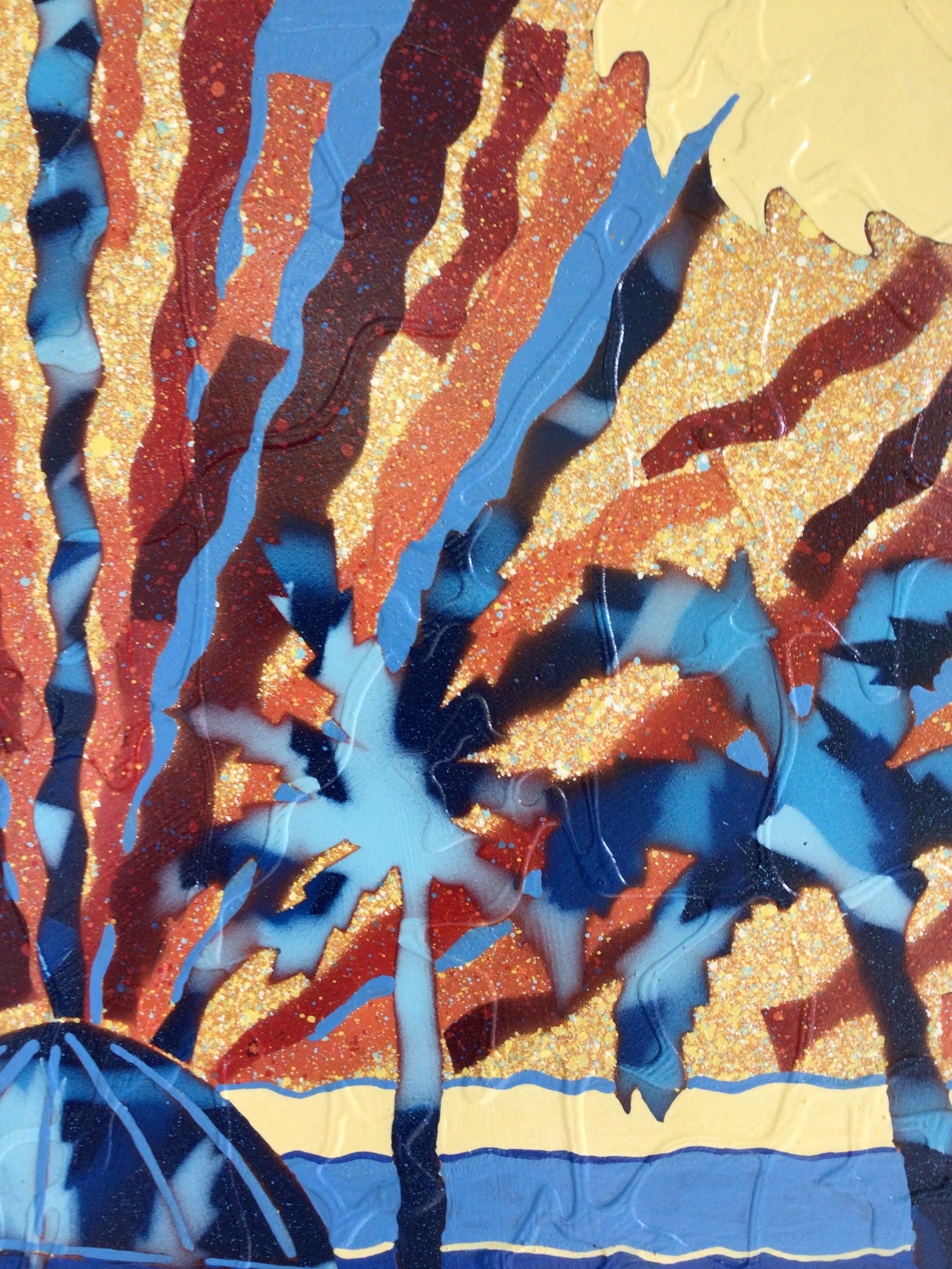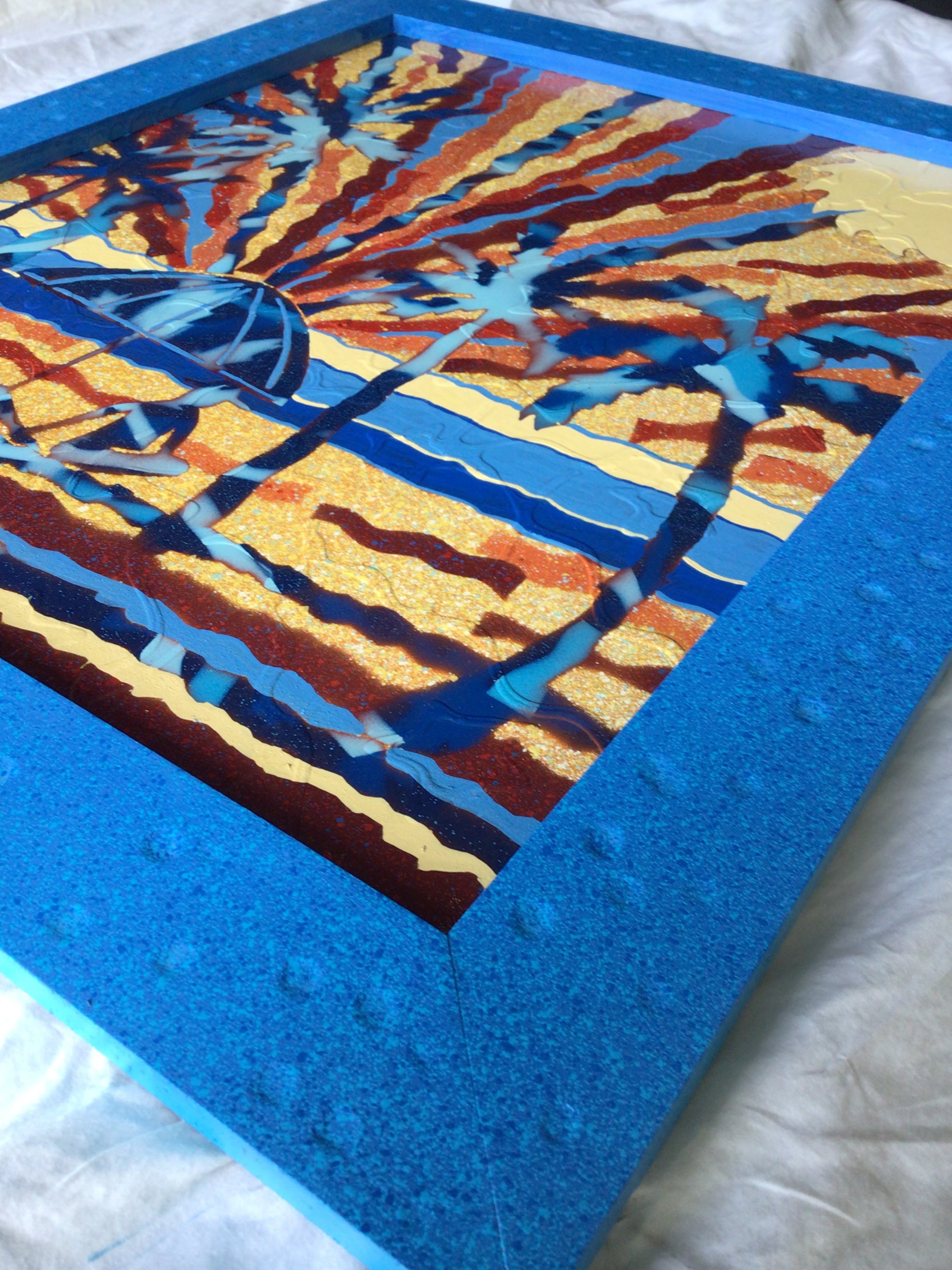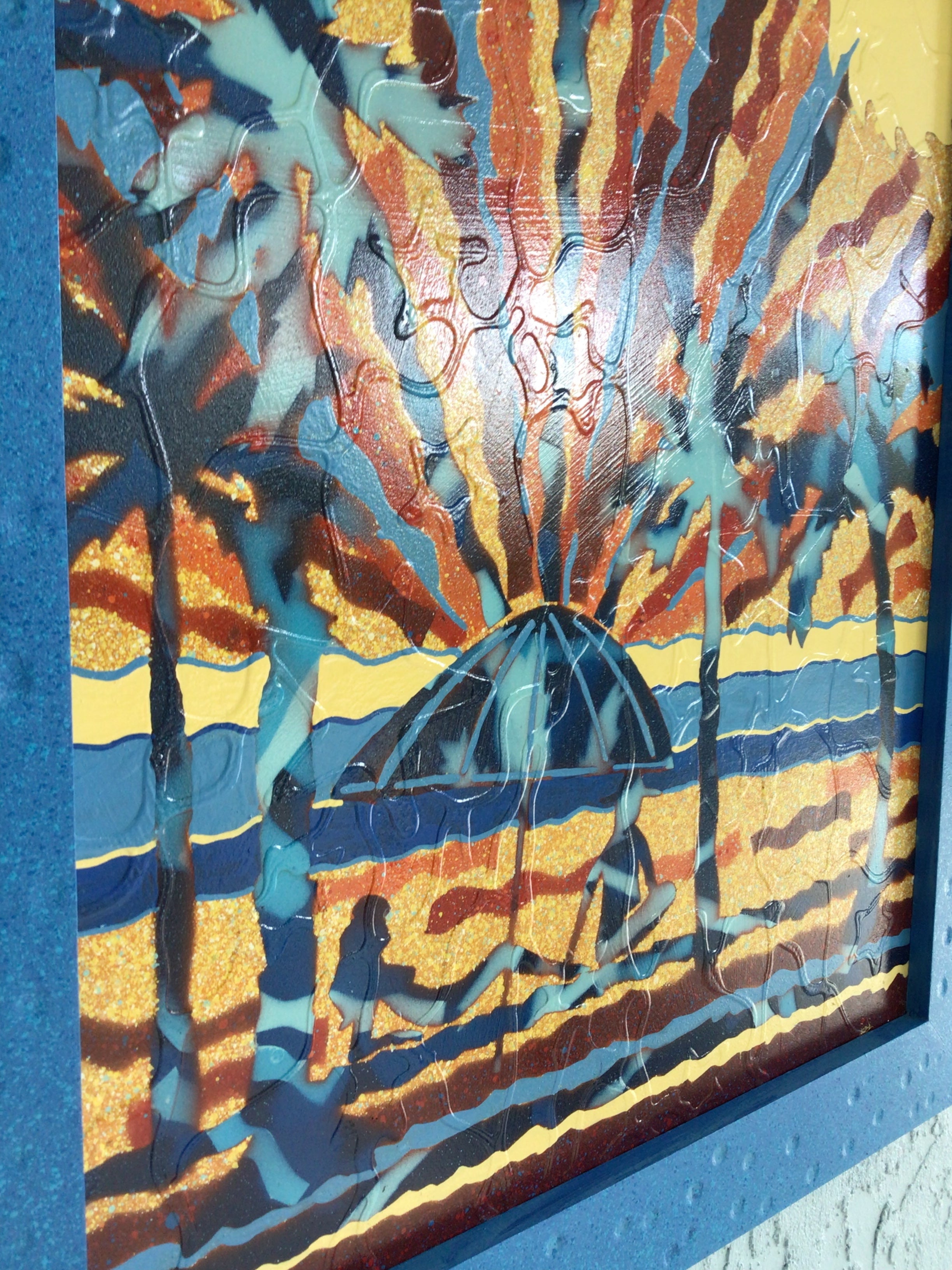 "Under the Sun" Original 24" x 29" acrylic and enamel on a wood panel in a studio made natural wood frame.