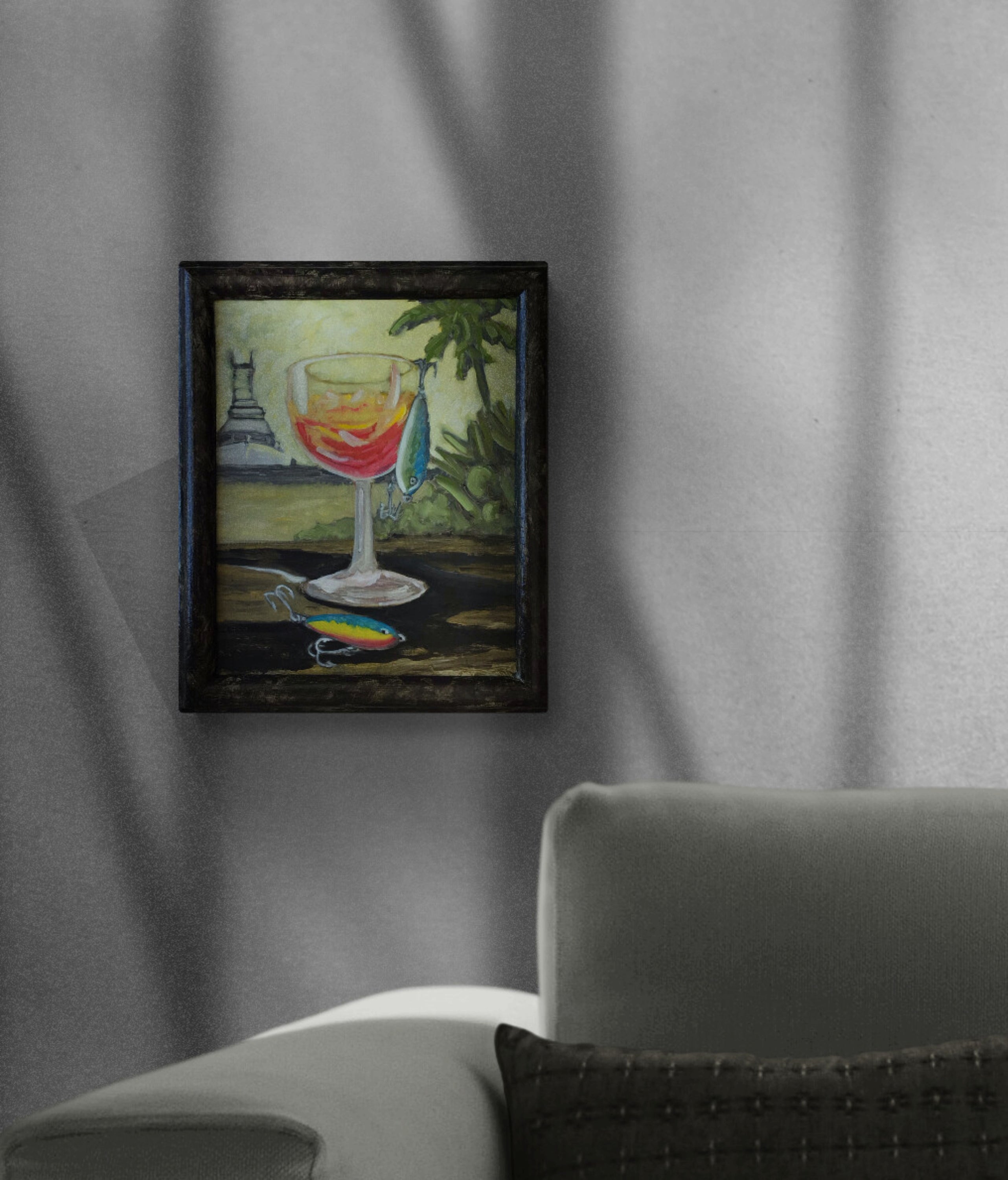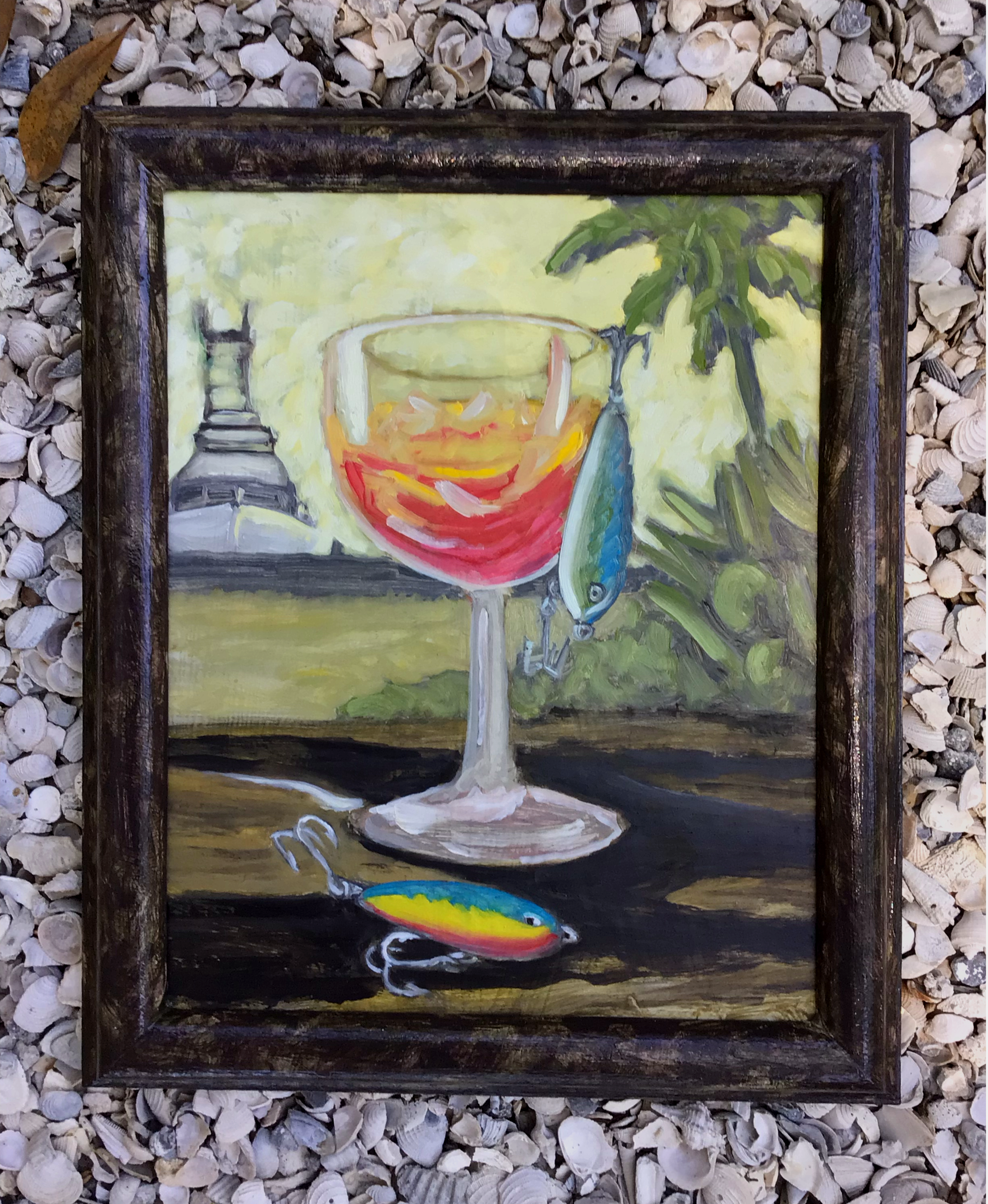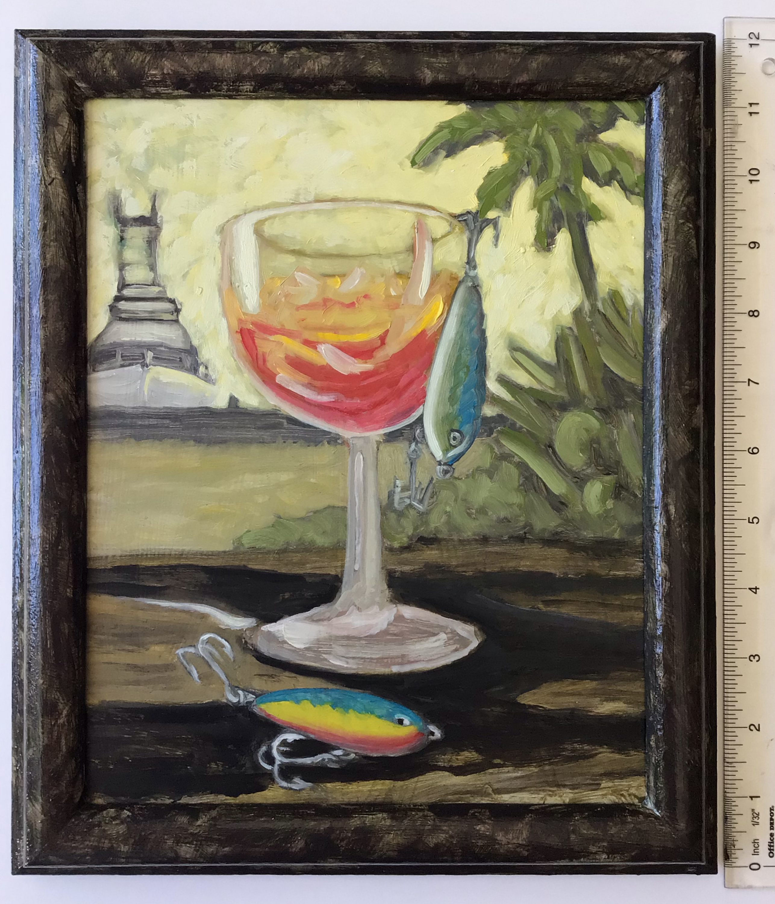 "Standard of Living" Original 10" x 12" (framed dimension) oil on canvas panel in a studio painted natural wood frame.