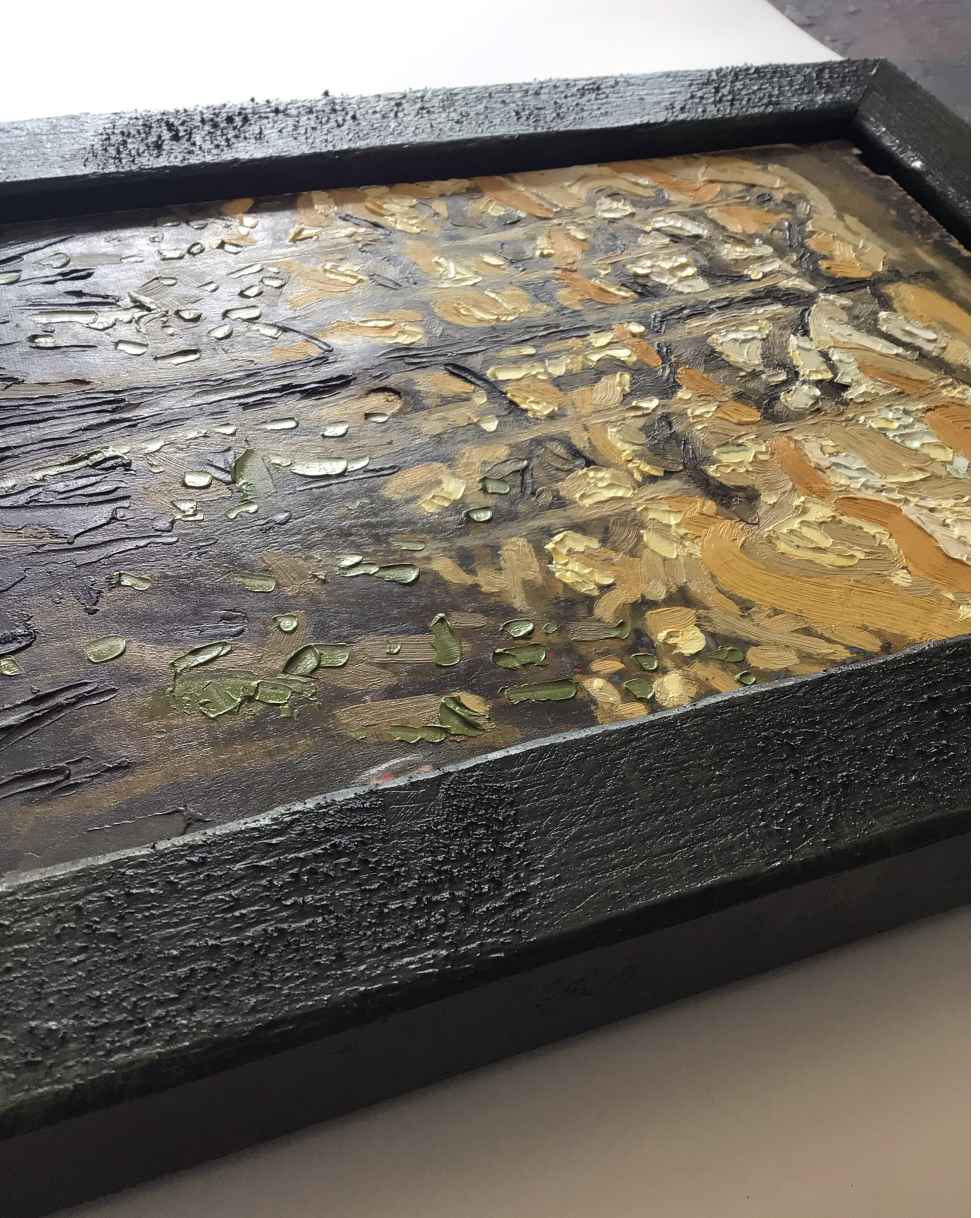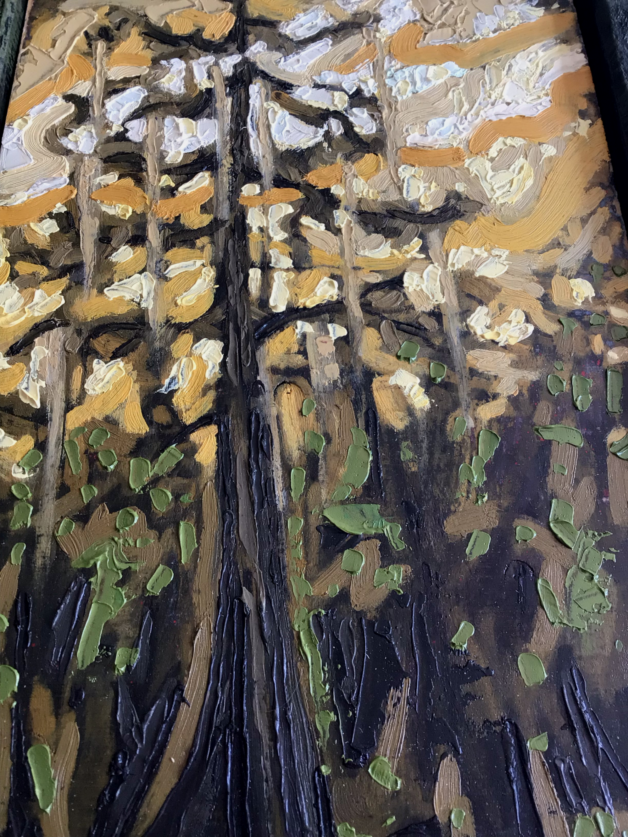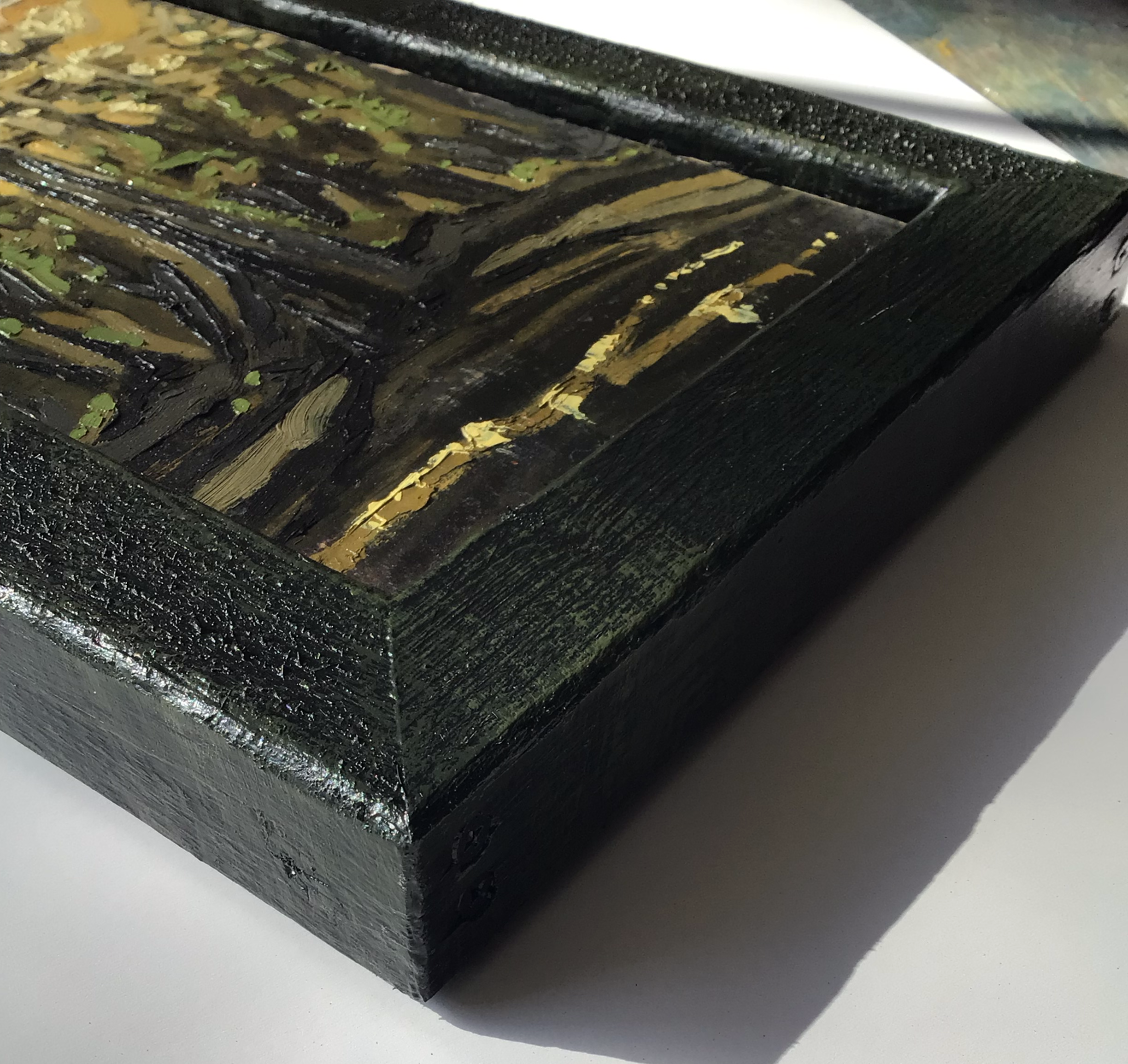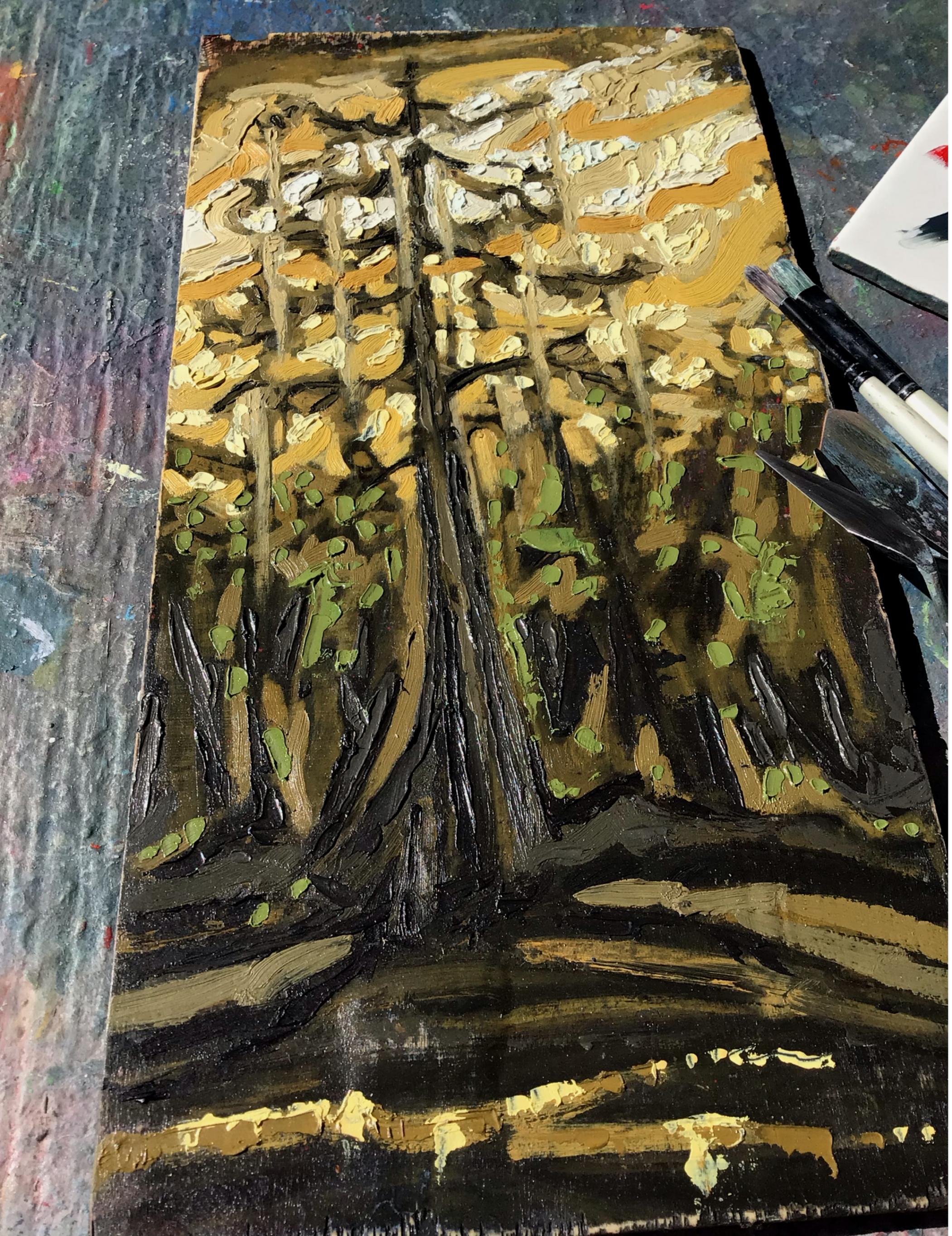 "Ups and Downs in the Bayou" Original 10.5" w x 17.5" h (framed dimension) oil on plywood in a studio made, natural cedar frame that is ready to hang.