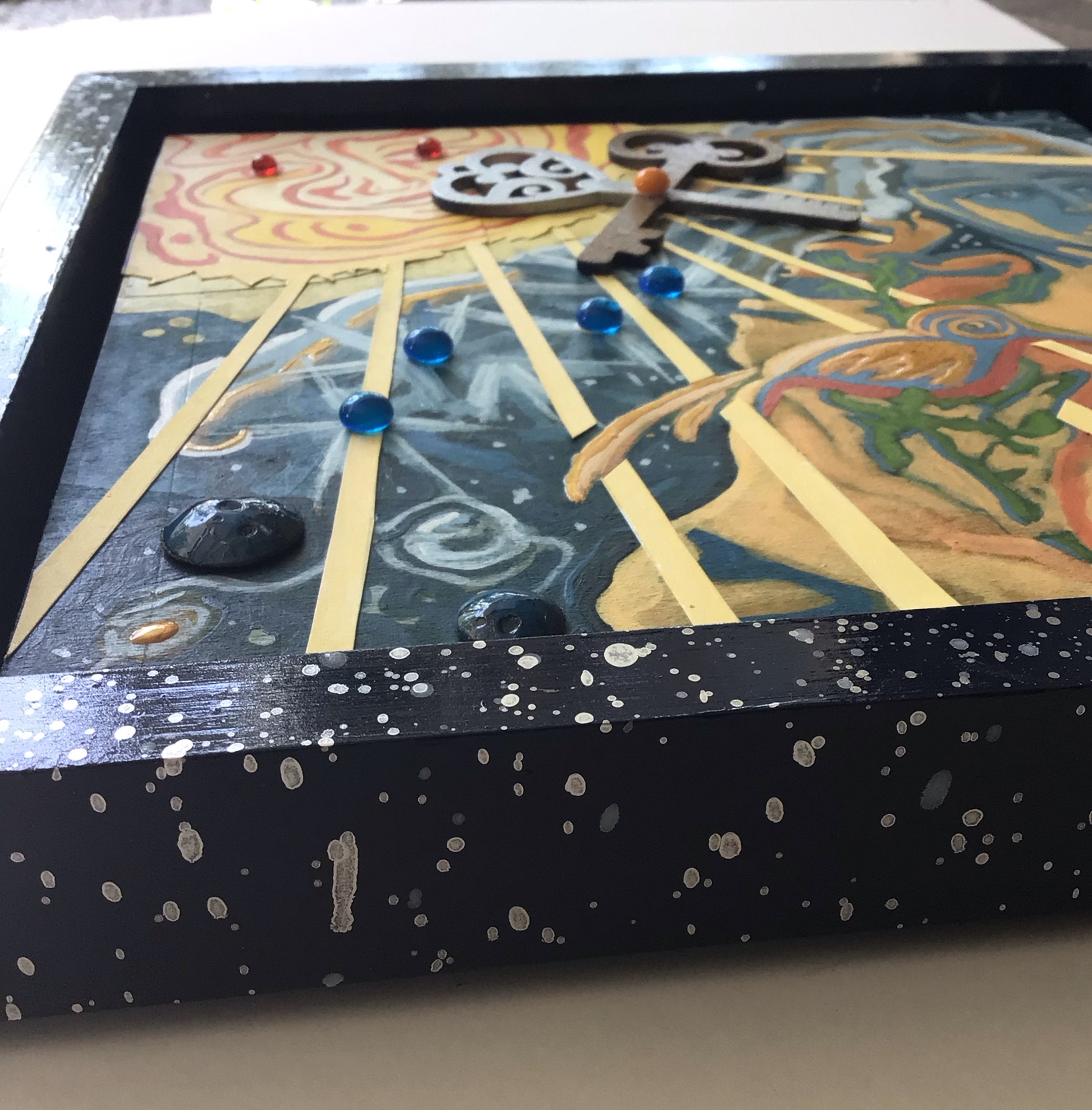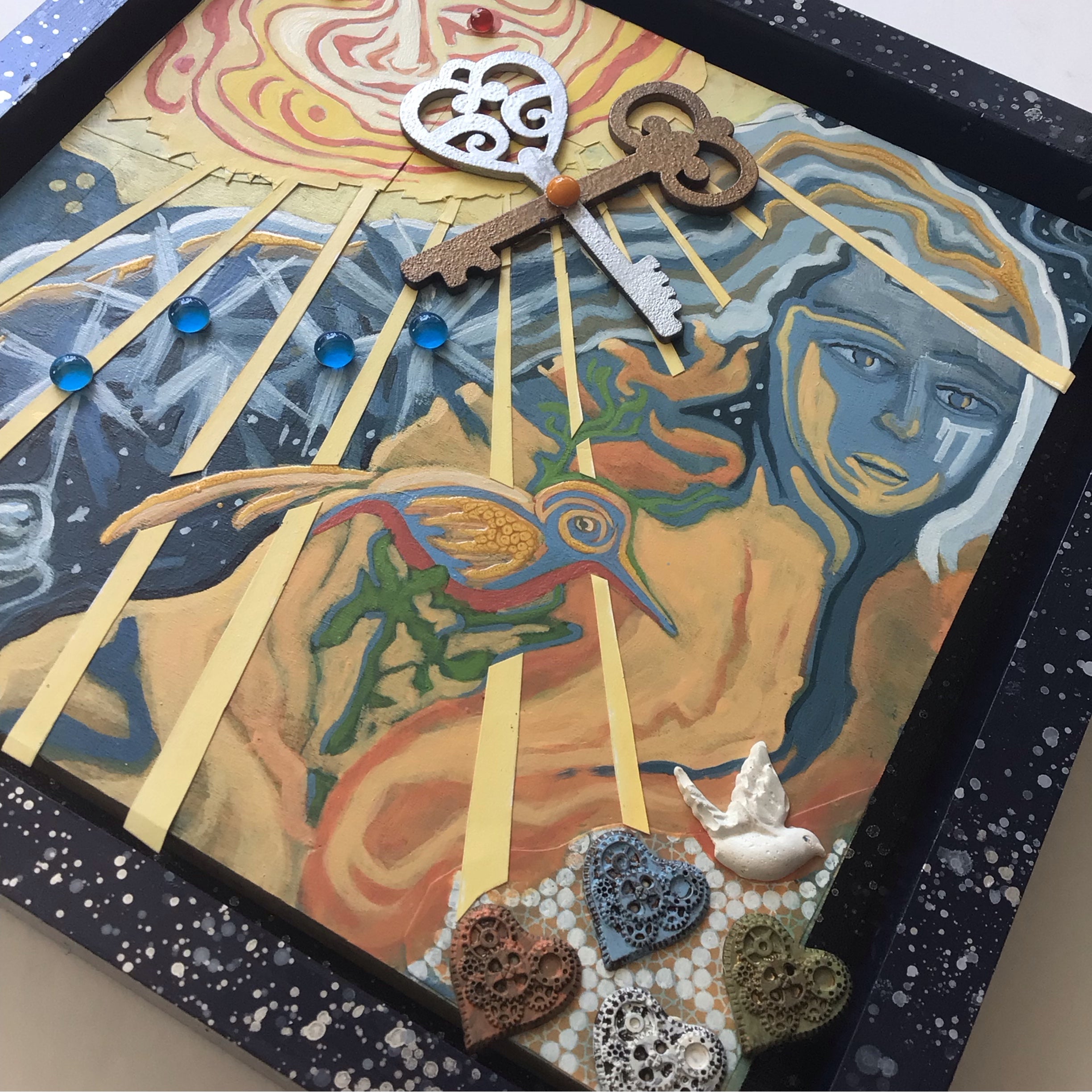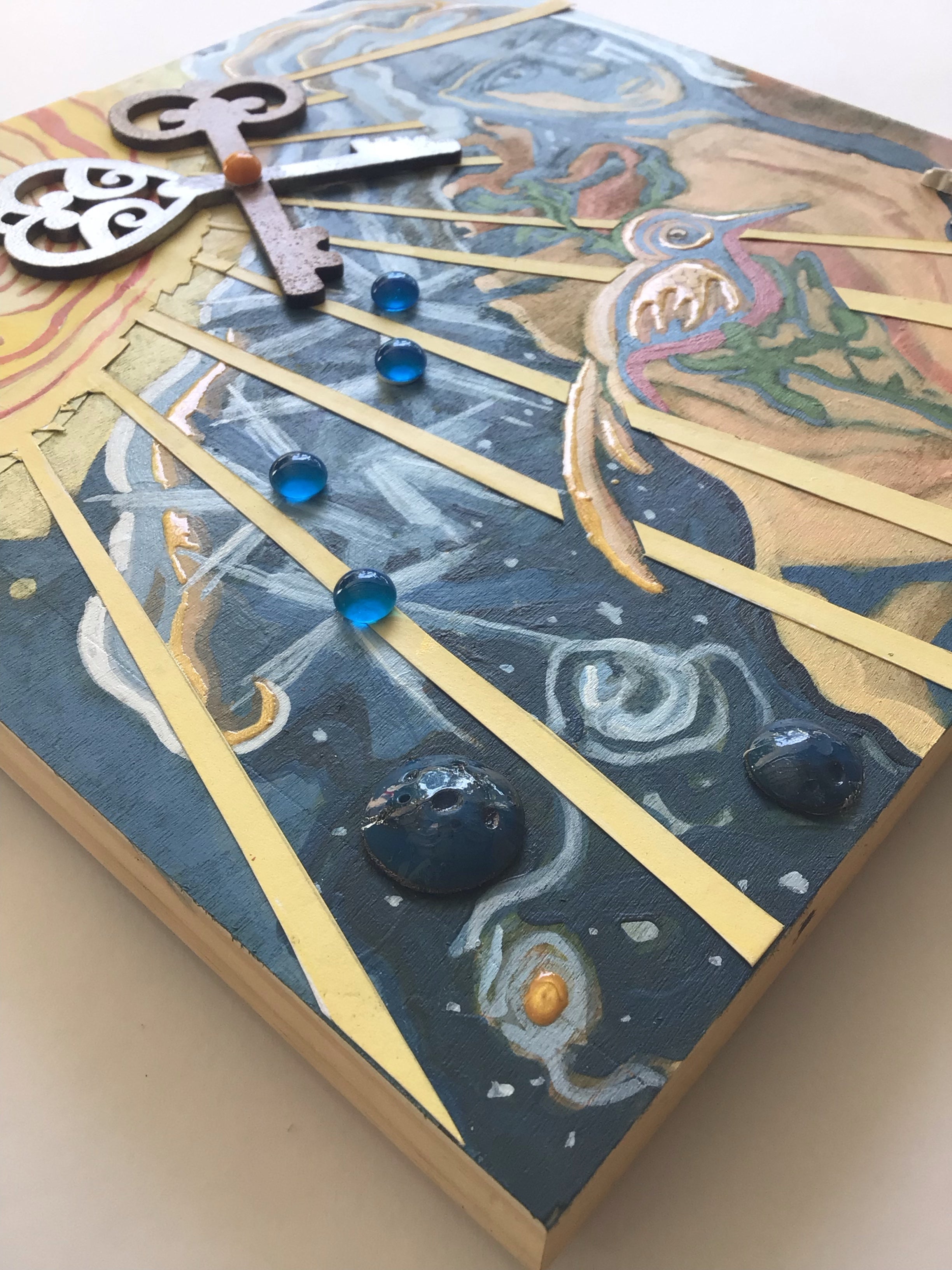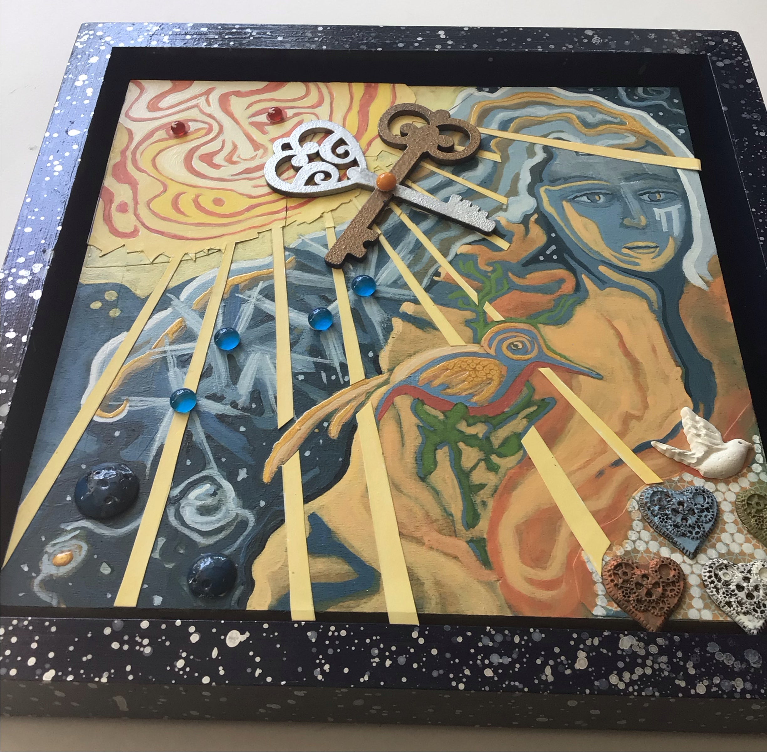 "Brother Sun Dawns on Sister Moon" – 12.25" x 12.25" Original mixed media on