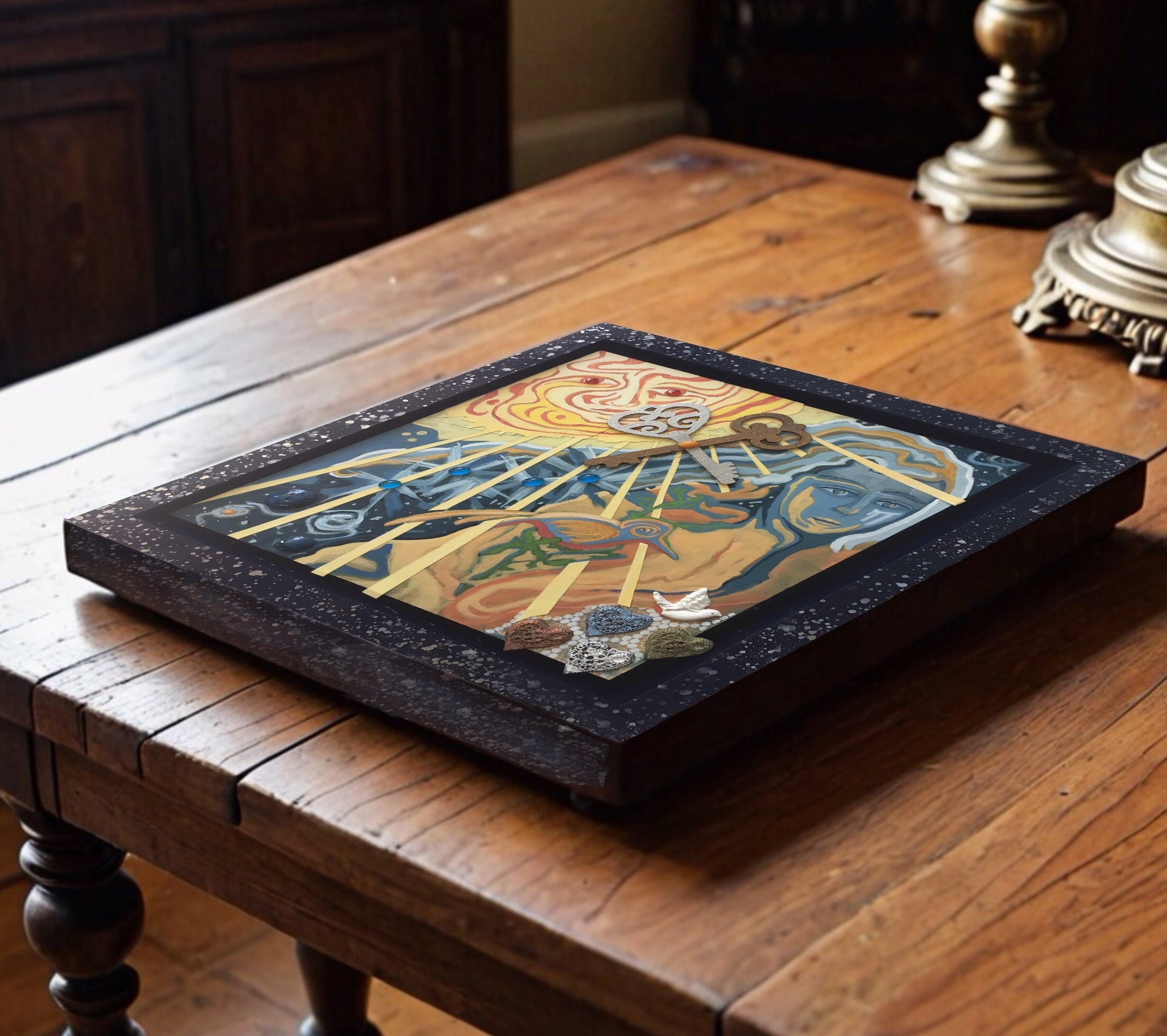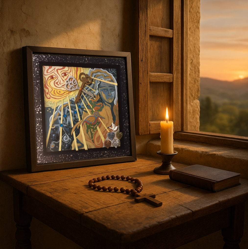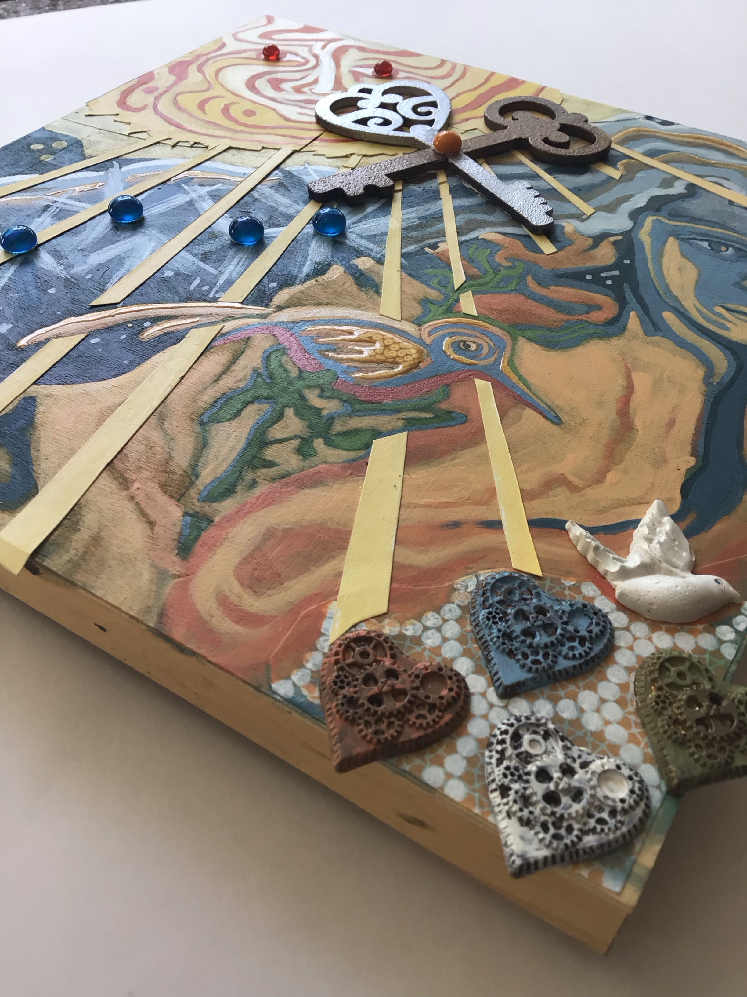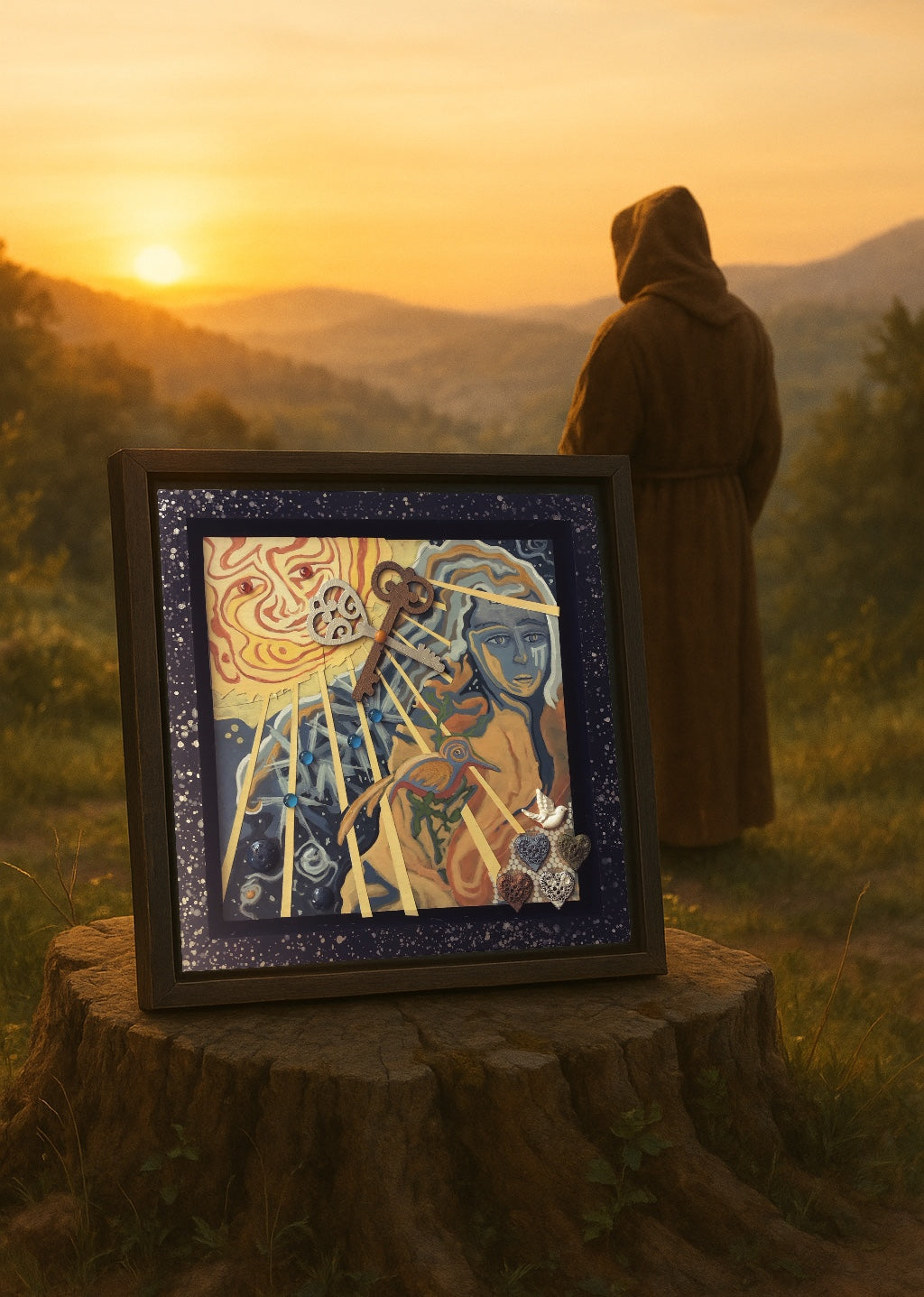 "Brother Sun Dawns on Sister Moon" – 12.25" x 12.25" Original mixed media on