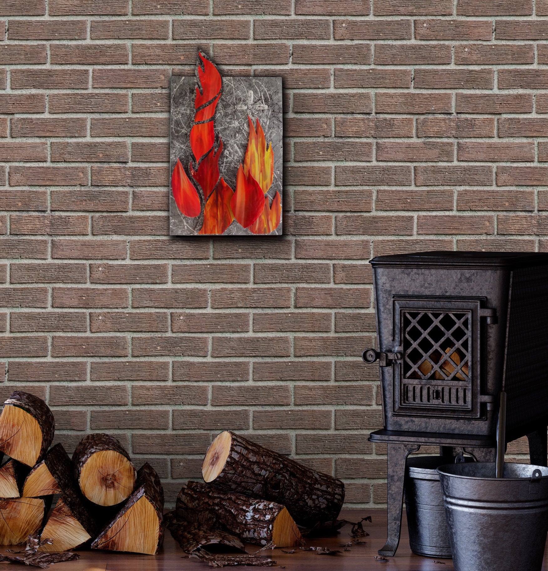 "Burnin’ For You" was actually a representational piece taken straight from the Blue Oyster Cult song, a classic I have always wanted to express artistically. Mixed media wood with curvy cut glass in a technique that isn't easy to reproduce.