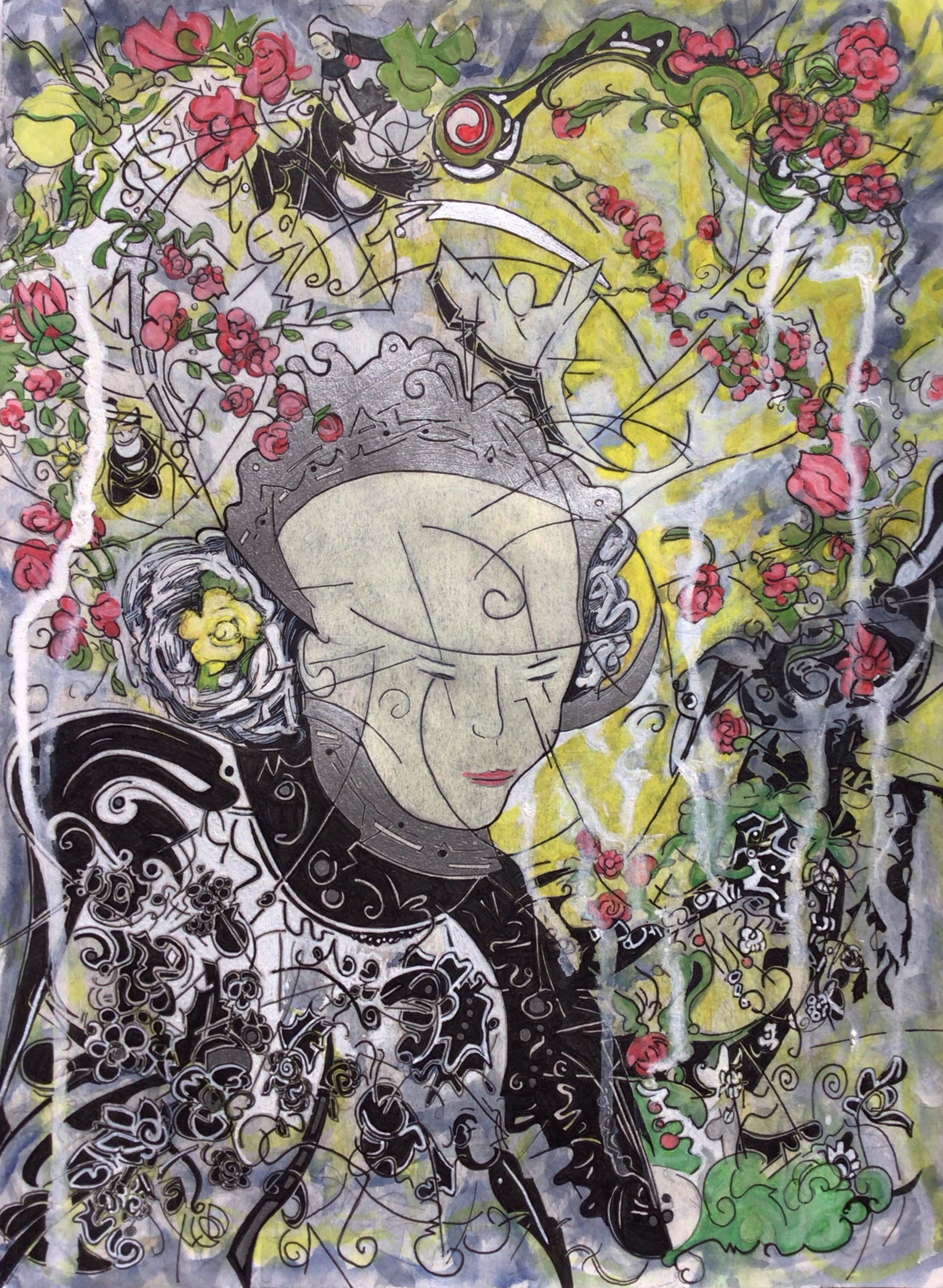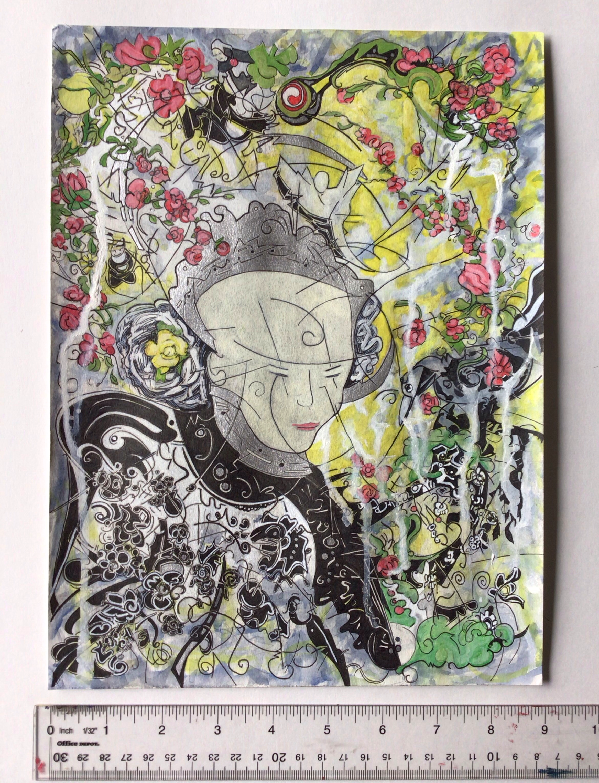 "In Oubaitori's Embrace" Original 9" x 12" Original watercolor and ink on paper.