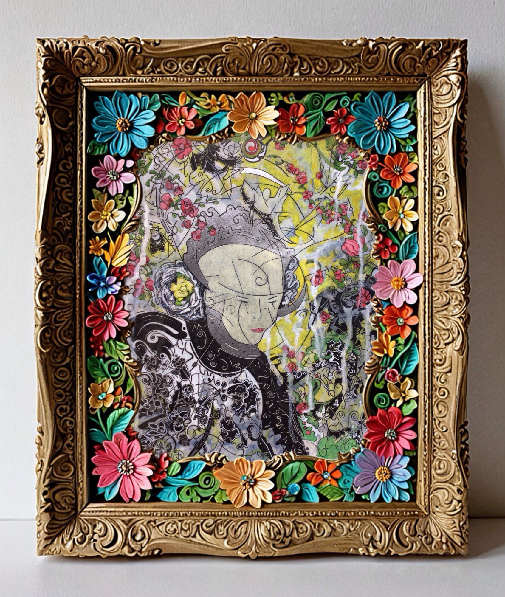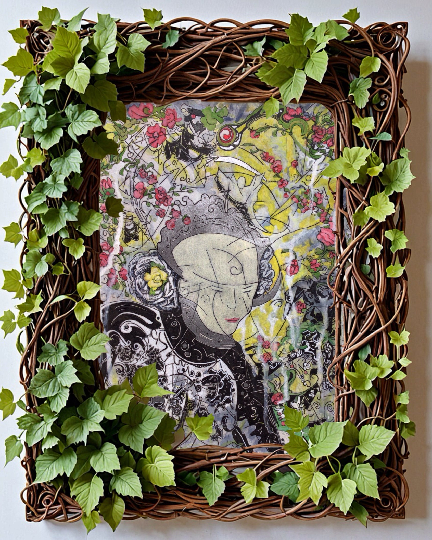 "In Oubaitori's Embrace" is an original watercolor and ink on paper that intertwines the serene portrait of a woman with the verdant embrace of garden vines, embodying the essence of oubaitori.... See the full story and much more LORE at: https://pictorislore.com/