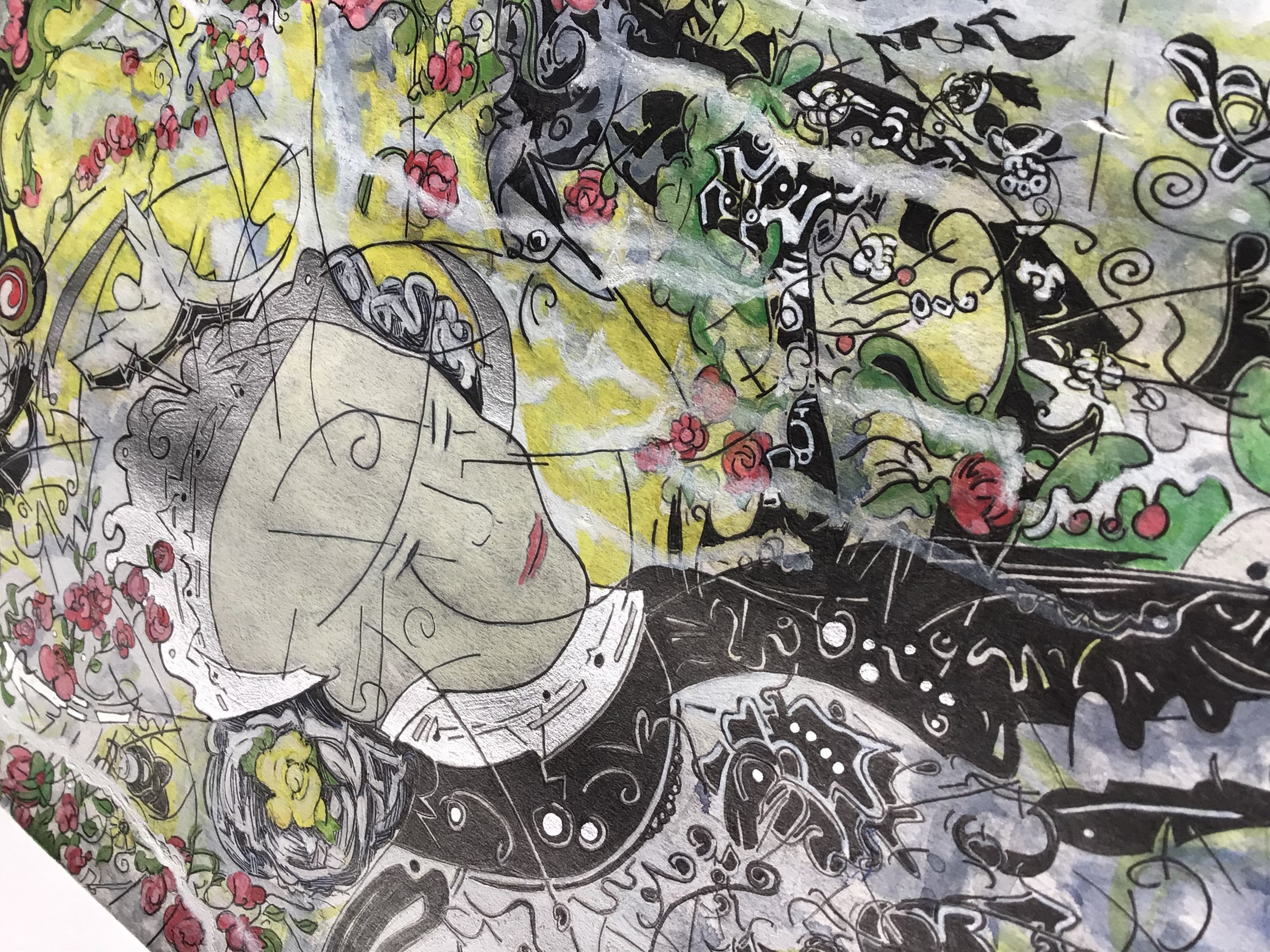 In Oubaitori's Embrace - Watercolor and Ink on Paper