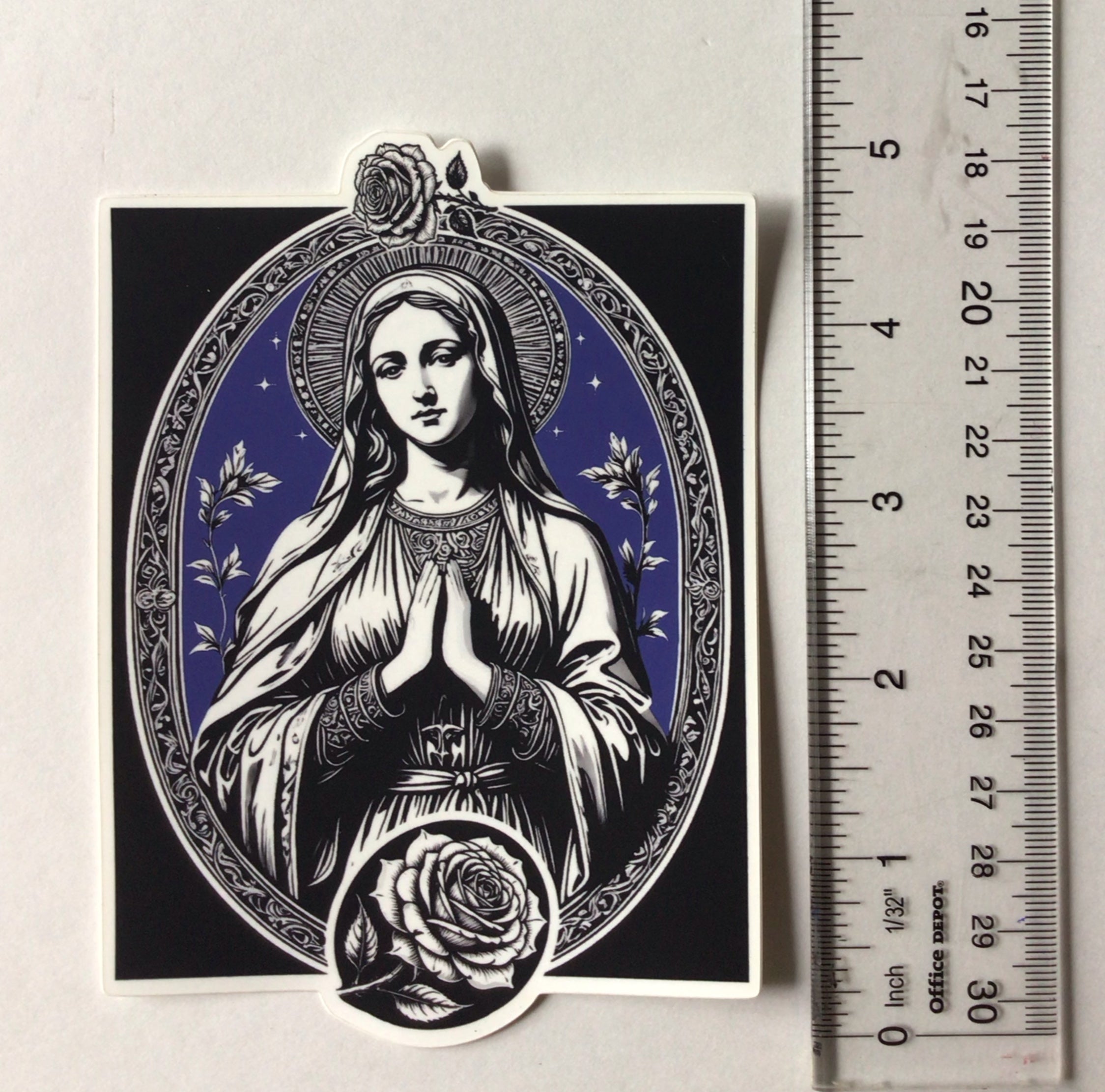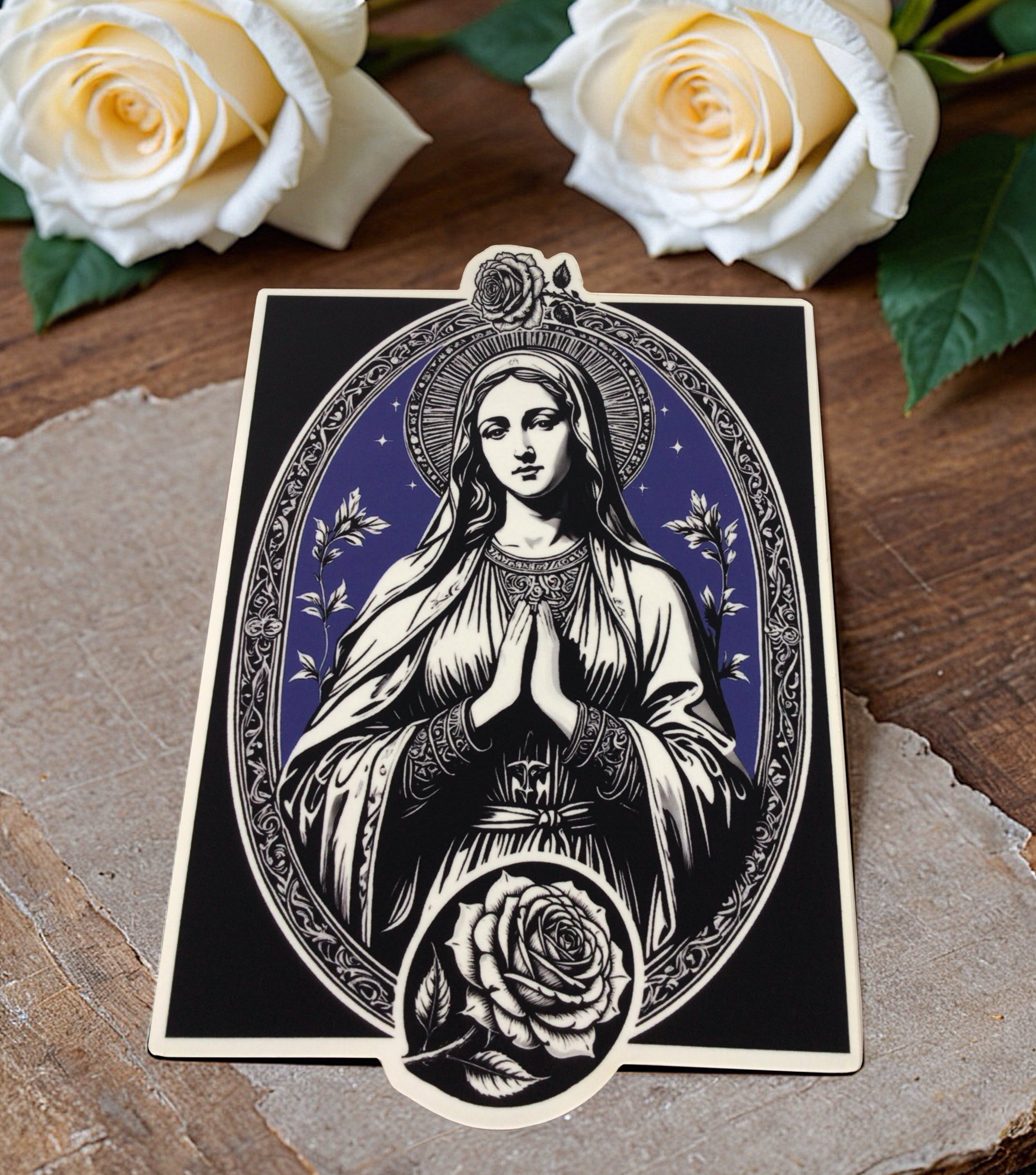 Virgin Mary with Two Roses - Sticker